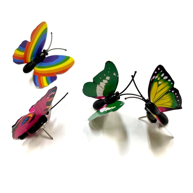 ランダムカラーの蝶々型画鋲は、あなたのインテリアを一層華やかに彩ります。
