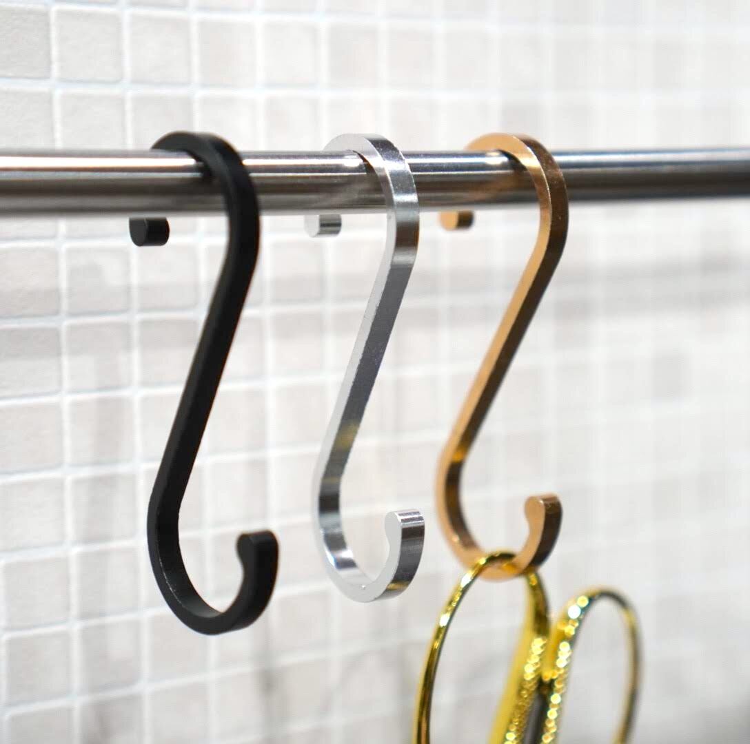 【 S字フック選べる3色 】5個入 アルミ製 軽量 ゴールド シルバー ブラック マット メタル Sカン 吊り下げ 収納 キッチン 洗面所 インテリア 雑貨 おしゃれ 真鍮風 ラック 台所 玄関