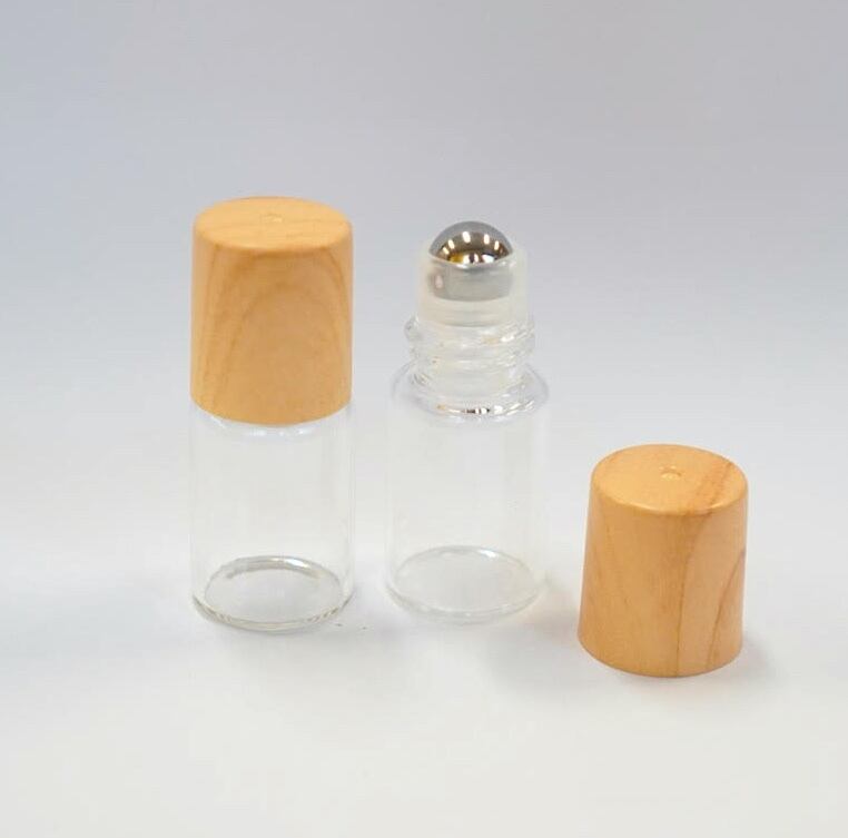【 木目調 キャップ ミニ ロールオン ボトル 】 2ml 1本 クリア ガラス 容器 詰替 少量 保湿 携帯 ナチュラル 可愛い プレゼント サンプル お試し 小型 旅行 ポーチ 香水 ネイル フレグランス アトマイザー 軽量 アロマ ハンドメイド オリジナル
