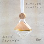 【 吊り下げ ウッド ディフューザー 】菱形 ゴールドライン 5ml 1個 ダイヤモンド 宝石 紐 中蓋付き クリア ガラス 容器 ミニ ボトル 小型 車 エアコン 吹き出し フレグランス 消臭 芳香 可愛い おしゃれ リフレッシュ 空間 コンパクト インテリア 個室 トイレ 玄関 クローゼット