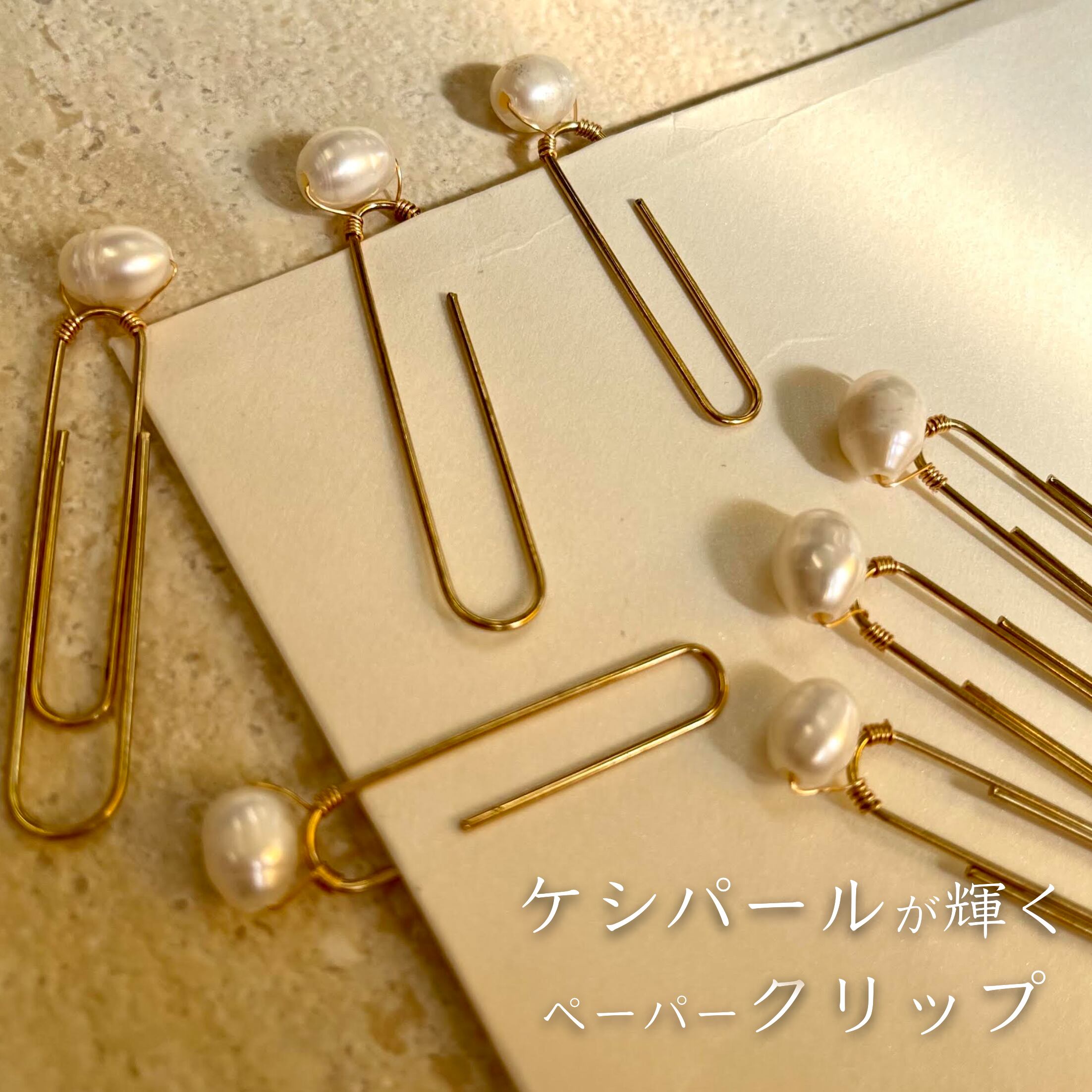 高級感のあるケシパールとゴールドの組み合わせが、おしゃれなデザインを引き立てるペーパークリップです。