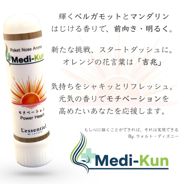 「Medi-Kun モチベーション」は、挑戦や受験・仕事へ前向きな気持ちを高めたい時に最適なアロマアイテムです。