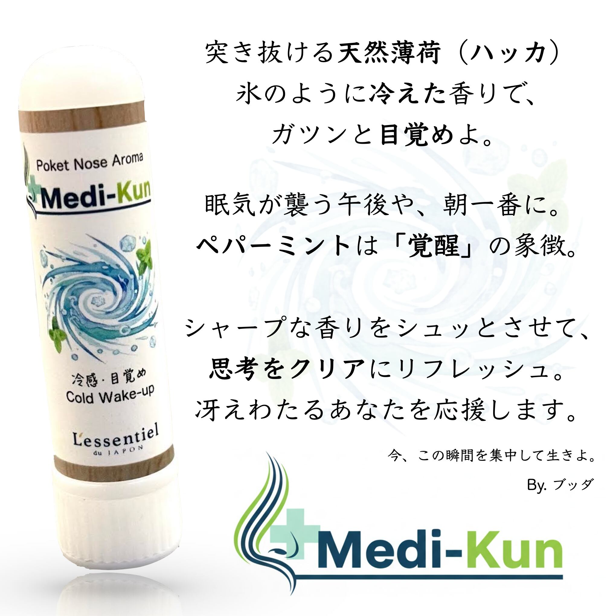 「Medi-Kun 冷感・目覚め」は、眠気が襲う午後や朝一番に最適なアロマアイテムです。
