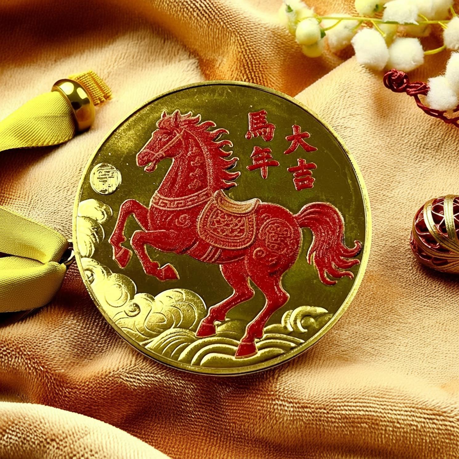 【 黄金 開運 メダル 】1枚 赤兎馬 成功 大吉 馬 午年 金 宝 玉 財 仕事 運 ウマ 縁起 鉄 メッキ製 家族 娘 愛 気 星座 占い 財布 福