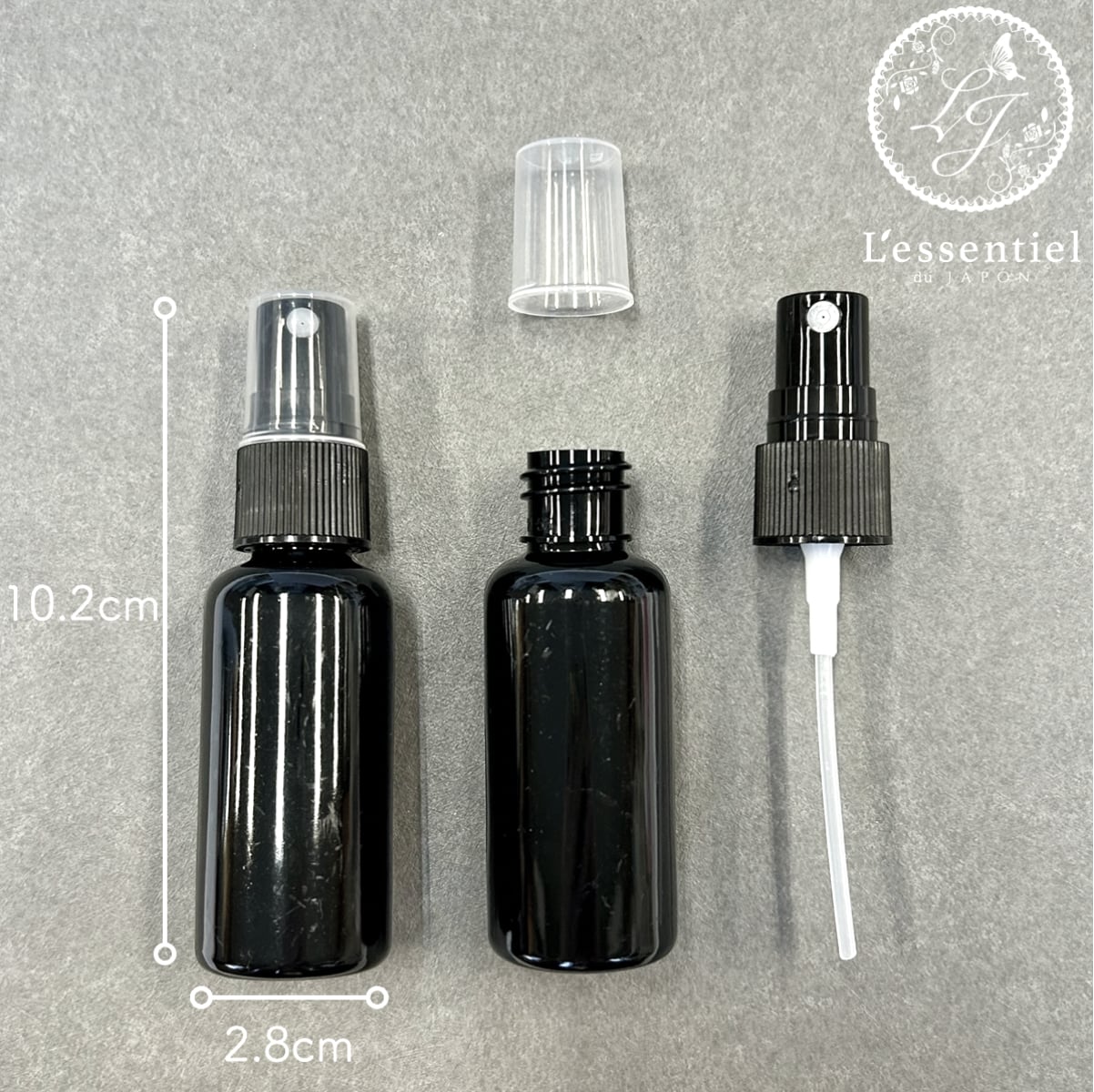 訳あり 1本 99円【 スプレー 容器 】 30ml ブラック プラスチック シンプル 黒 無地 遮光 軽量 エタノール 次亜塩素酸 アロマ 香水 掃除 除菌 消臭 詰替 丸肩