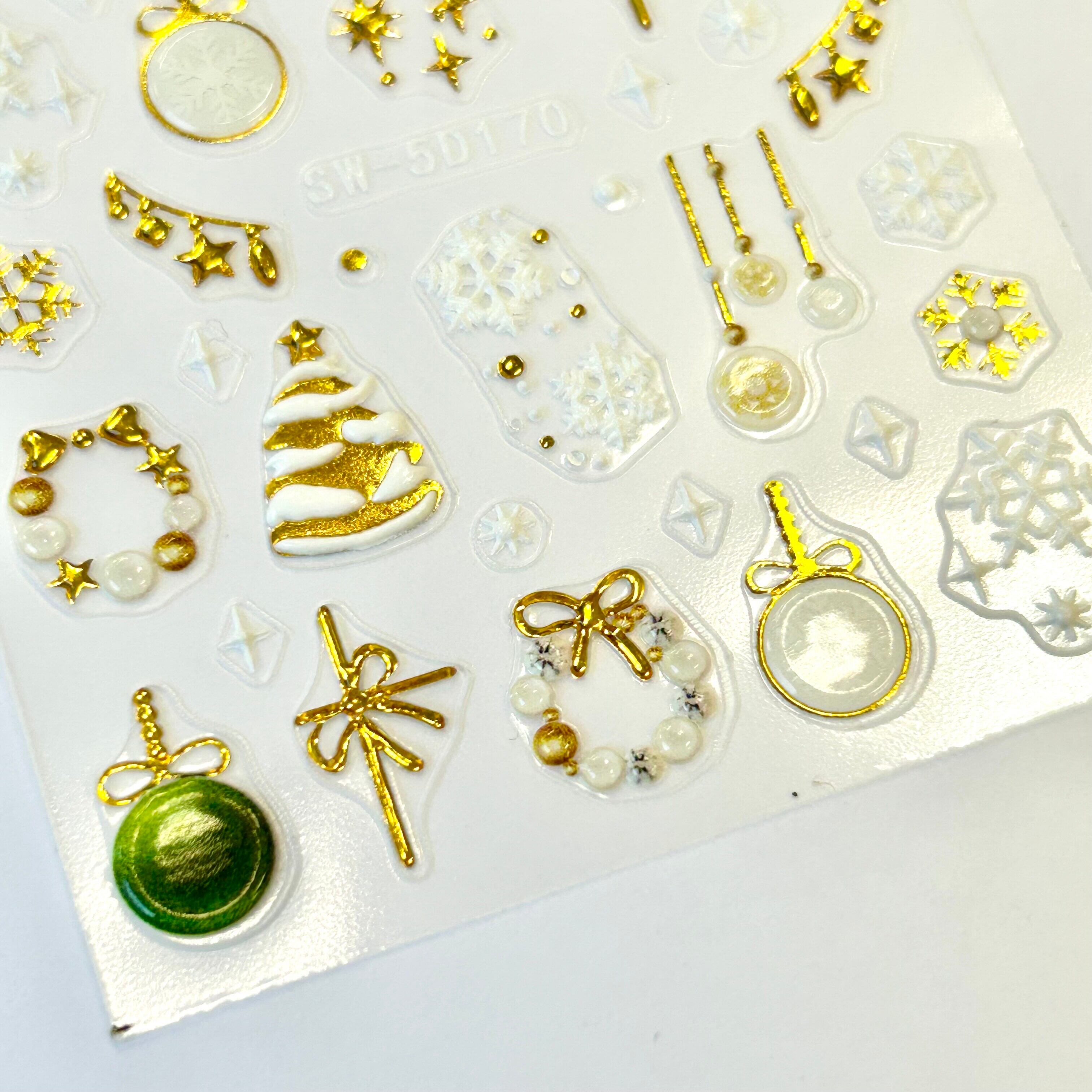 【 ネイル シール 】 キラキラ オーナメント クリスマス ゴールド ツリー 雪 結晶 冬 幸運 自然 可愛い 美容 手 爪 ジェルネイル ネイルアート デート 女 手紙 便箋 スタンプ 立体 3D ぷっくり エンボス ステッカー おしゃれ 結婚式 招待状 ウエディング 引き出物 ポイント ラッピング プレゼント カード