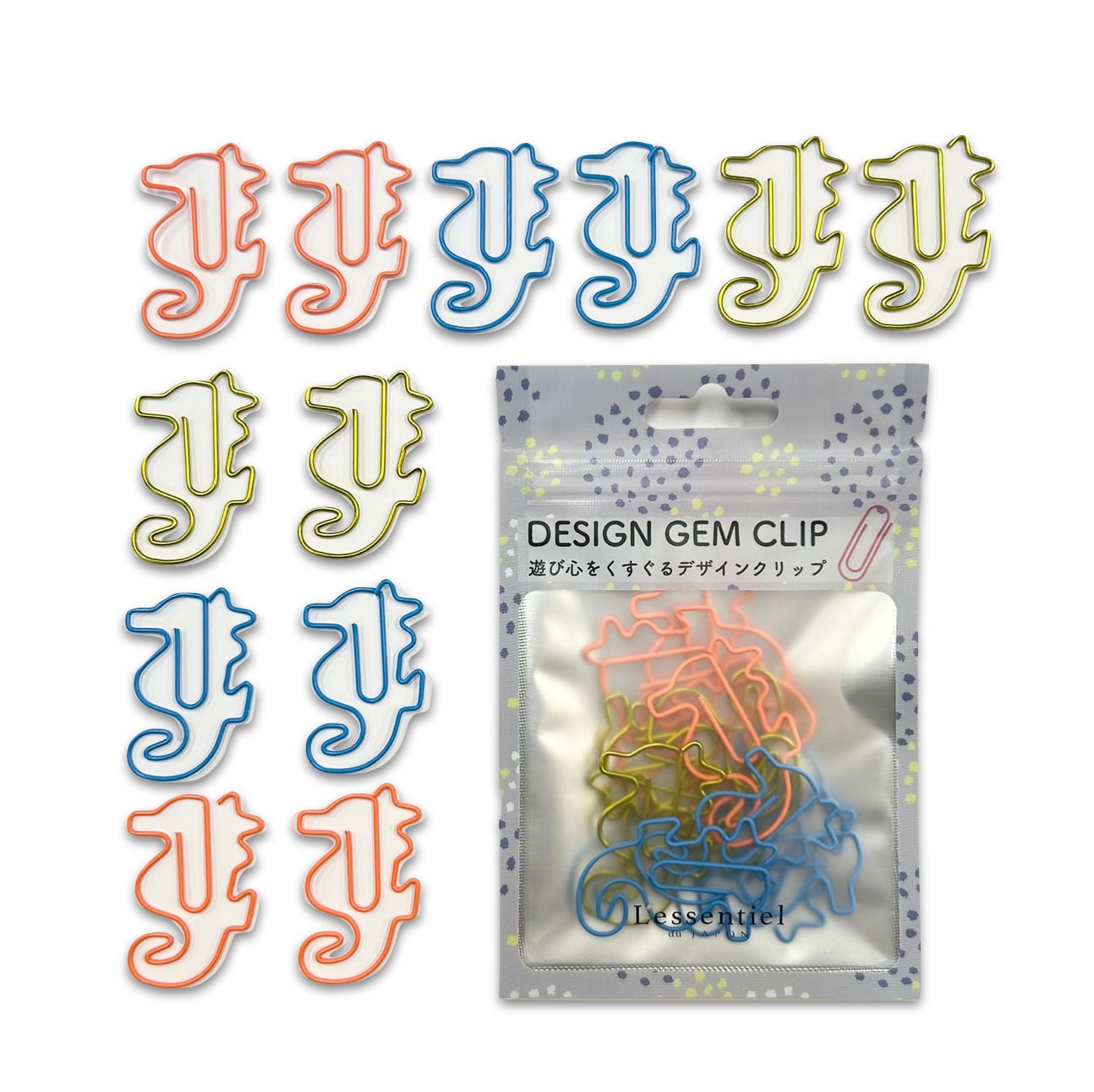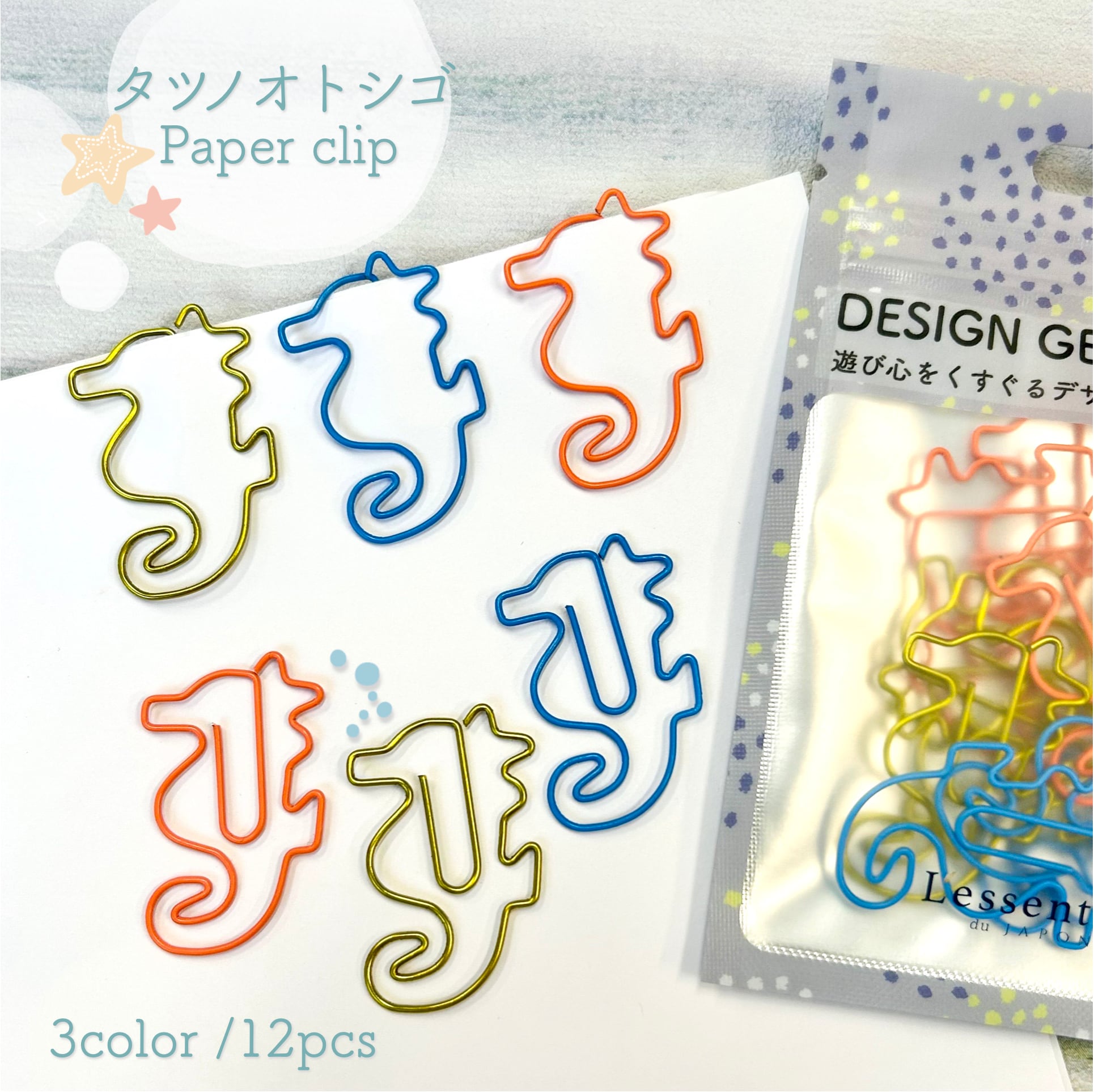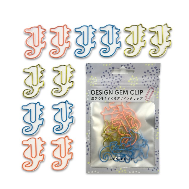 【 タツノオトシゴ クリップ 】 3色 12個入 シーホース 海 生き物 魚 水族館 辰年 ウミウマ 竜の落とし子 オフィス 文房具 筆記用具 ペーパー デスク ゼム モチーフ A4 プレゼント ラッピング 手帳 本 栞 ブック バインダー 学校 事務 用品 会社 仕分け