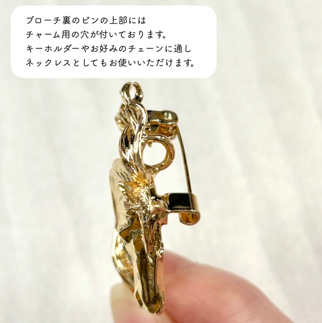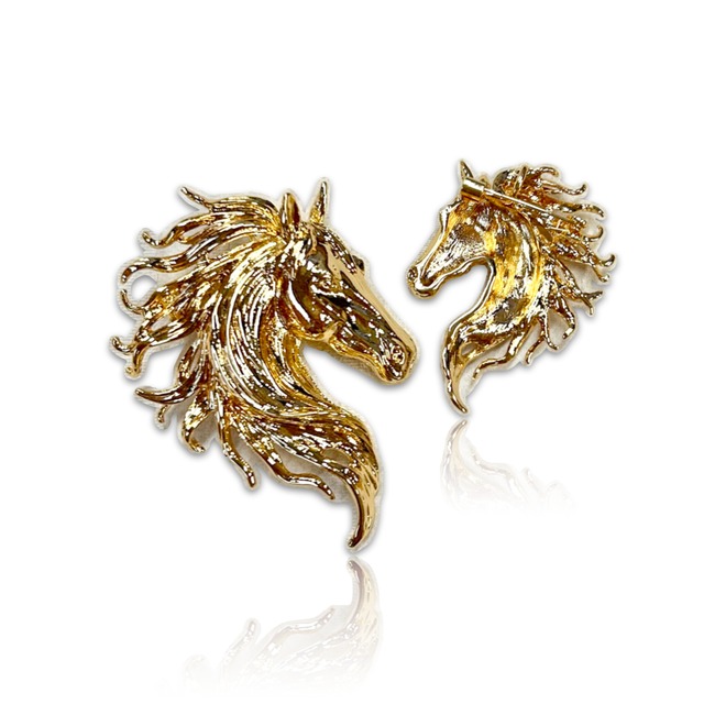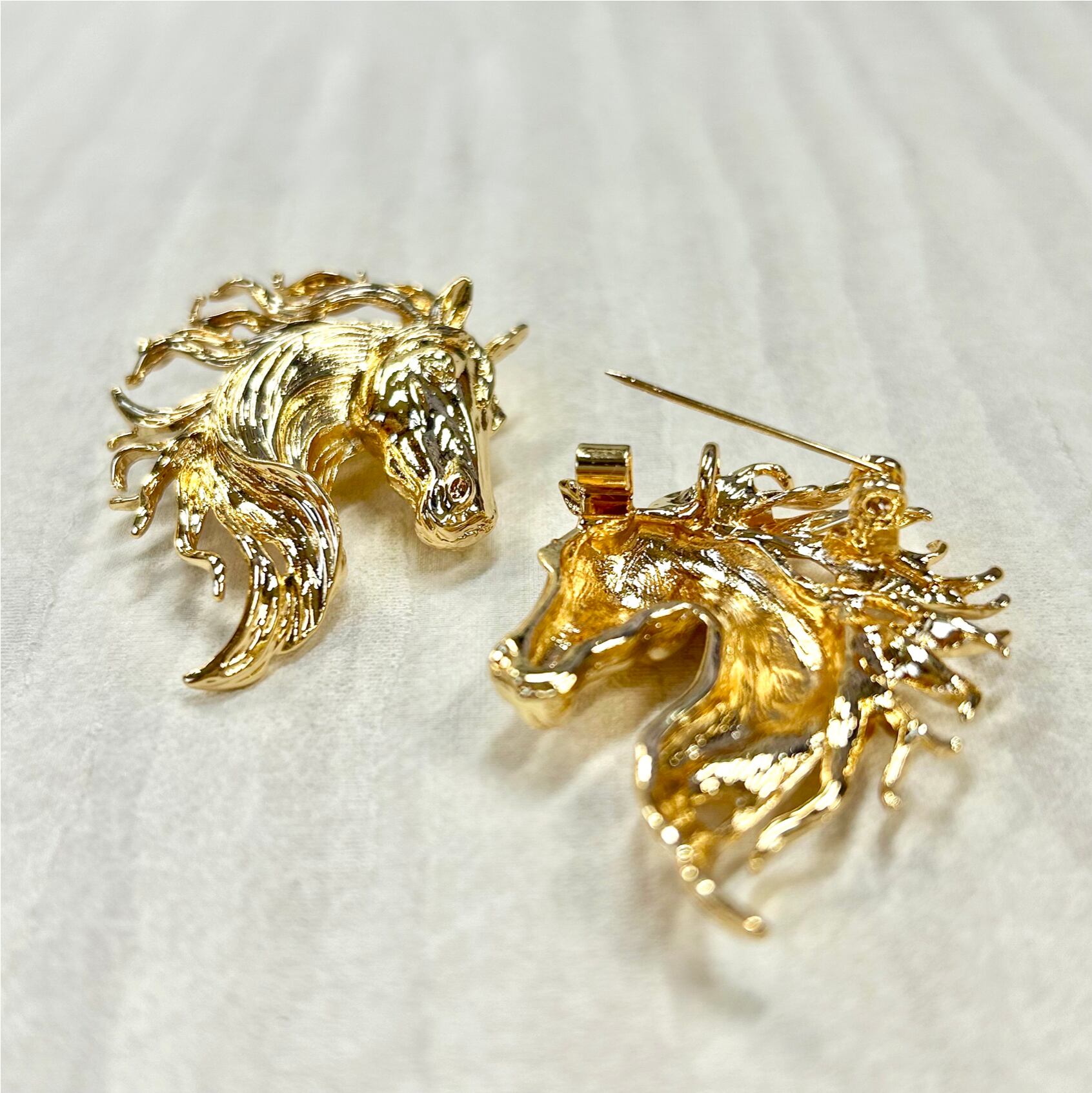 煌びやかなゴールドが目を引く、馬をモチーフにした素敵なブローチです。