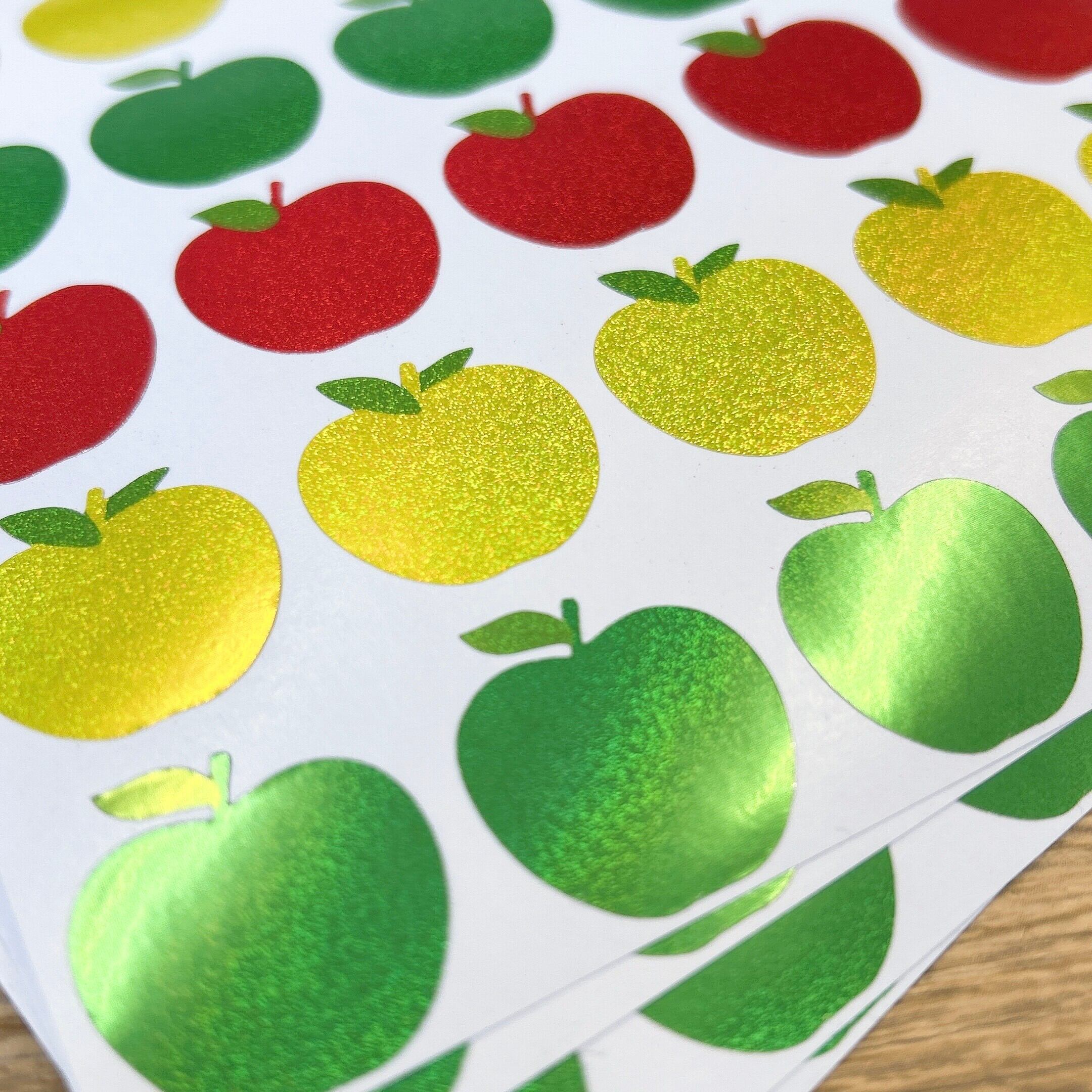 見る角度によって煌めきを放つキュートなりんごがモチーフのシールは、