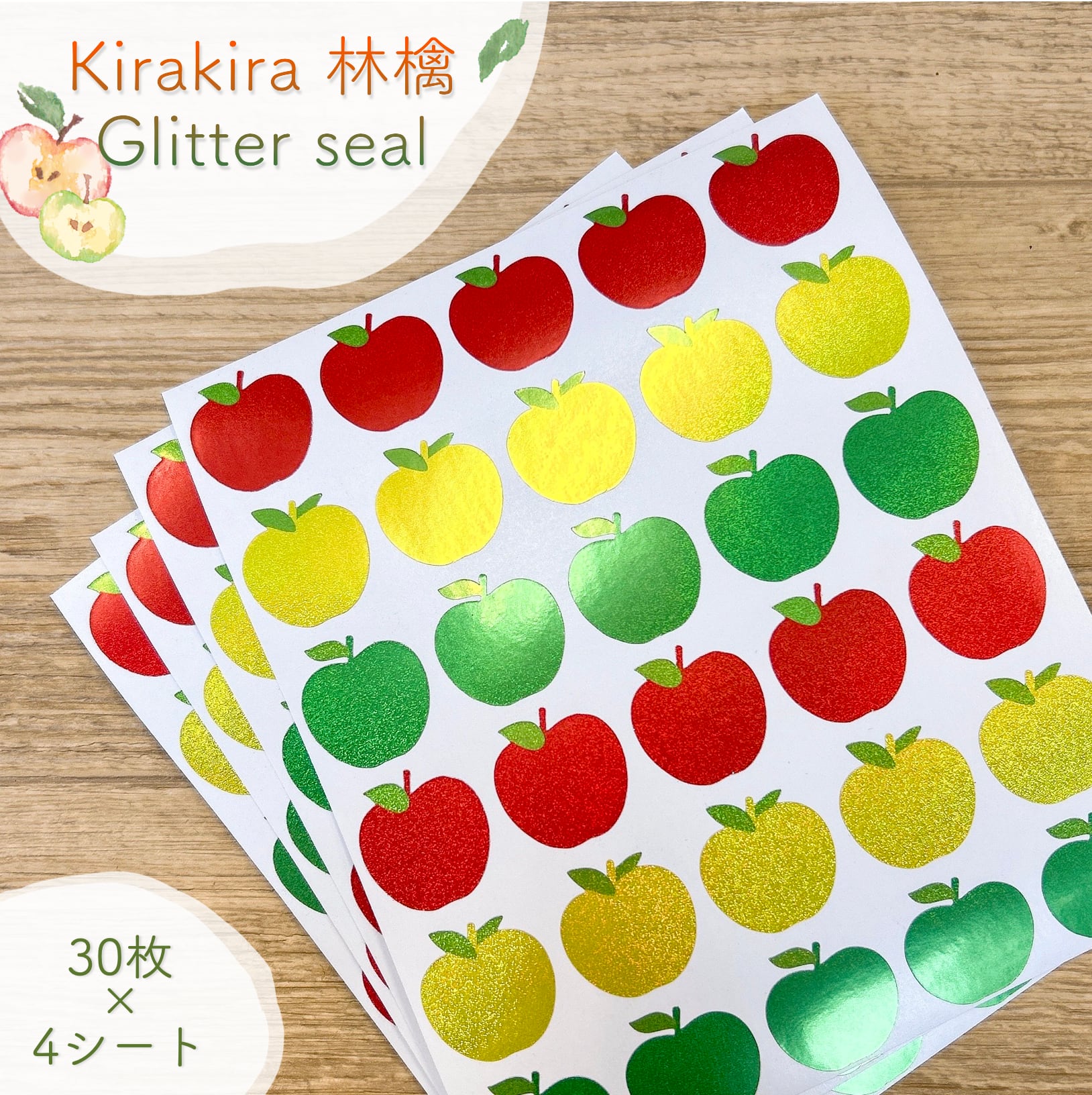 【内容】キラキラ林檎グリッターシール 30枚×4シート(合計120枚)