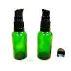 【 スタイリッシュ 遮光瓶 グリーン ポンプ ボトル 】30mL 1本 緑 黒 キャップ ブラック 携帯 ガラス 詰替 容器 化粧水 乳液 美容液 シャンプー リンス クリーム アロマ オイル 強化 モダン
