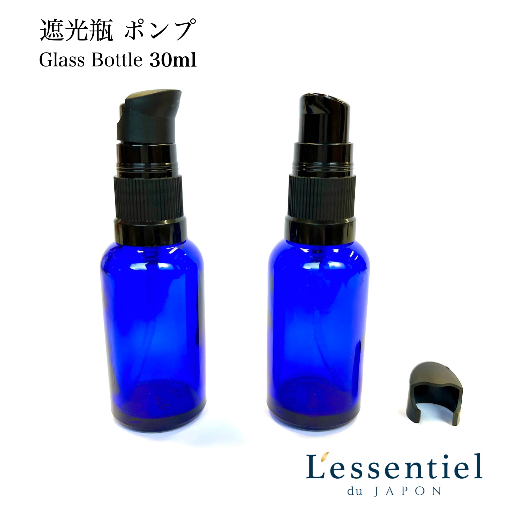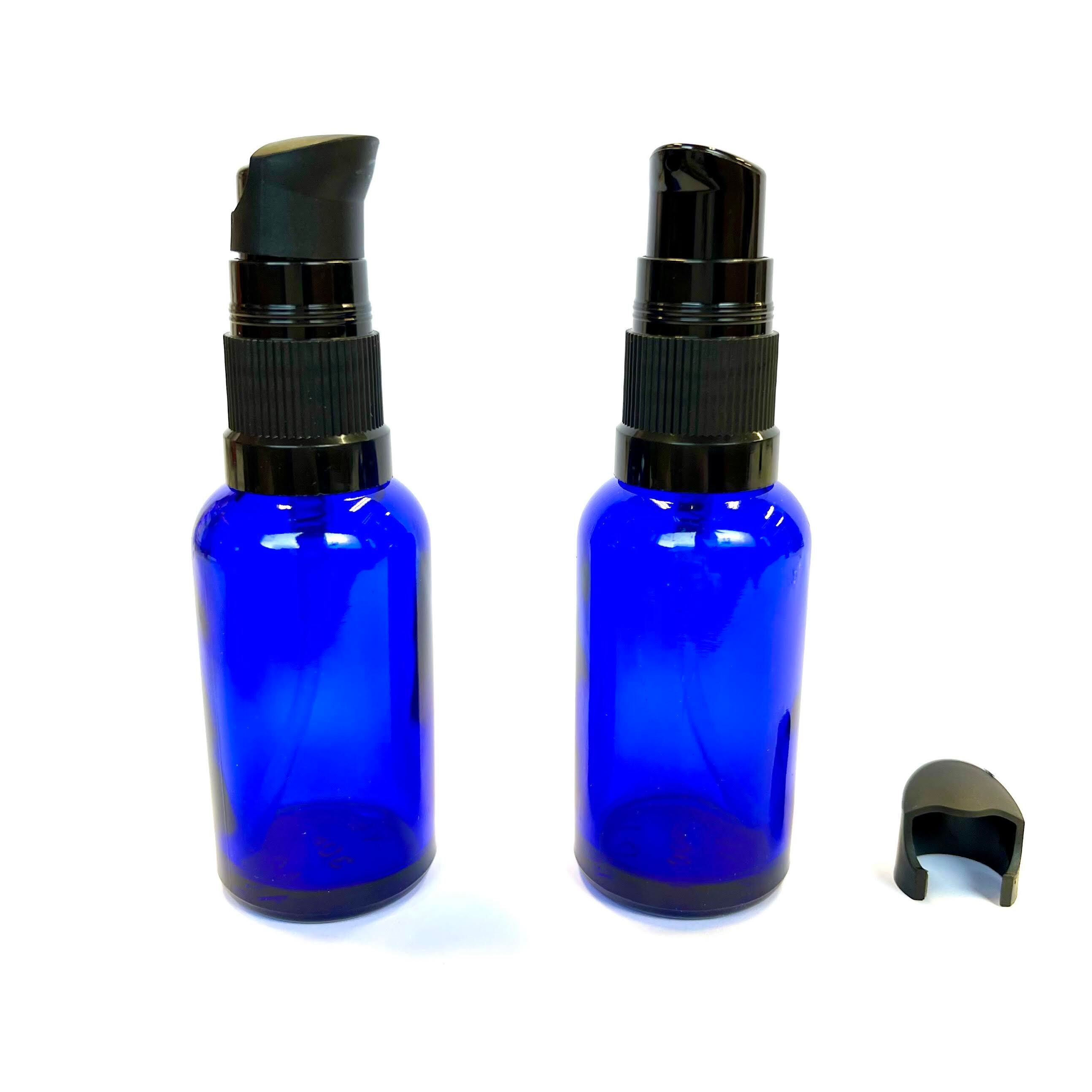 【 スタイリッシュ 遮光瓶 ブルー ポンプ ボトル 】30mL 1本 青 黒 キャップ ブラック 携帯 ガラス 詰替 容器 化粧水 乳液 美容液 シャンプー リンス クリーム アロマ オイル 強化 モダン