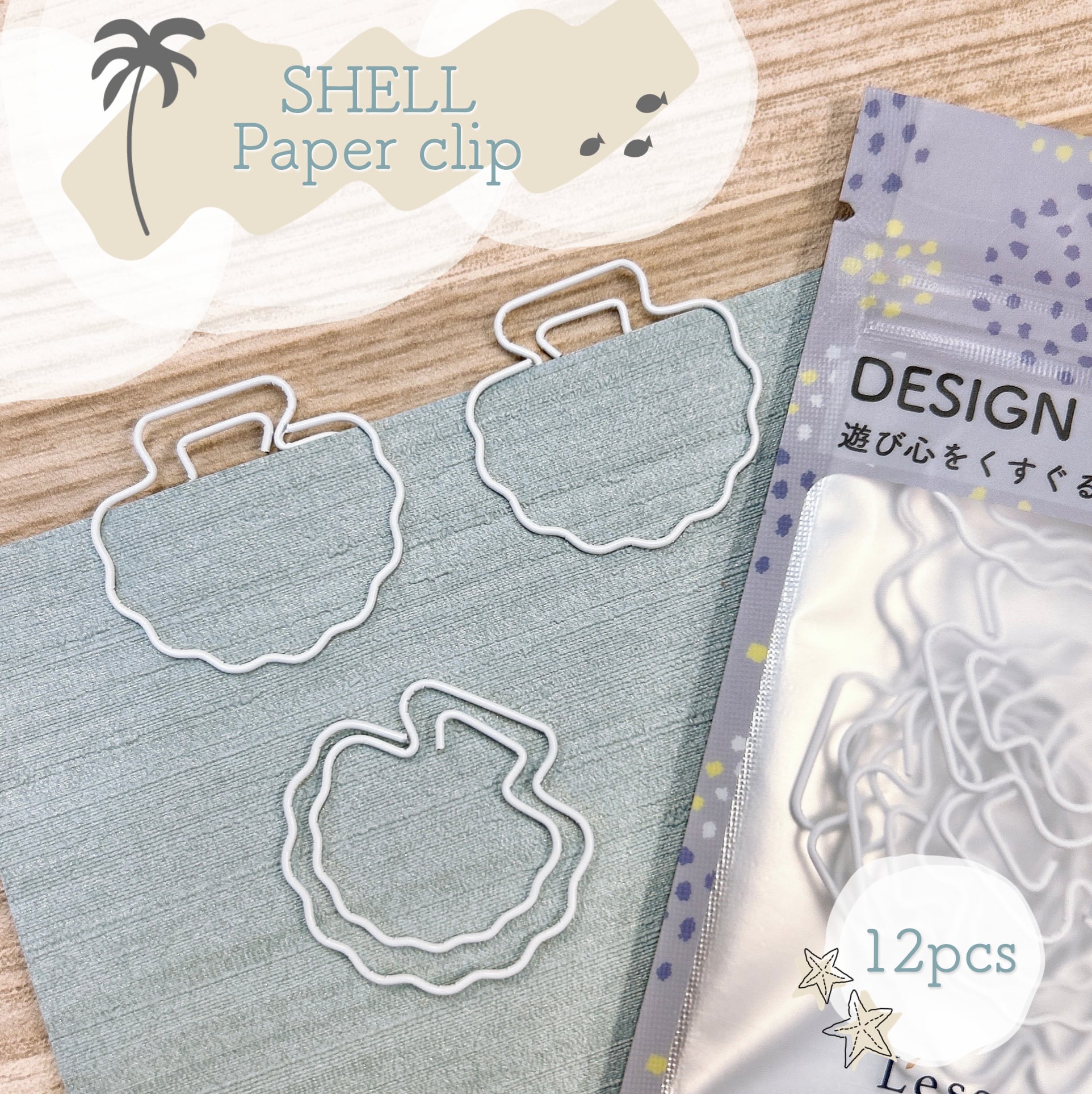 【 シェル クリップ 】 12個入 ホワイト 貝 ホタテ 貝殻 二枚貝 海 ビーチ 生き物 魚 水族館 ハワイ オフィス 会社 文房具 筆記用具 ペーパー デスク アイテム ゼム モチーフ A4 プレゼント ラッピング ギフト 手帳 日記 本 栞 ブック バインダー 学校 事務 用品 会社 仕分け 文具 雑貨