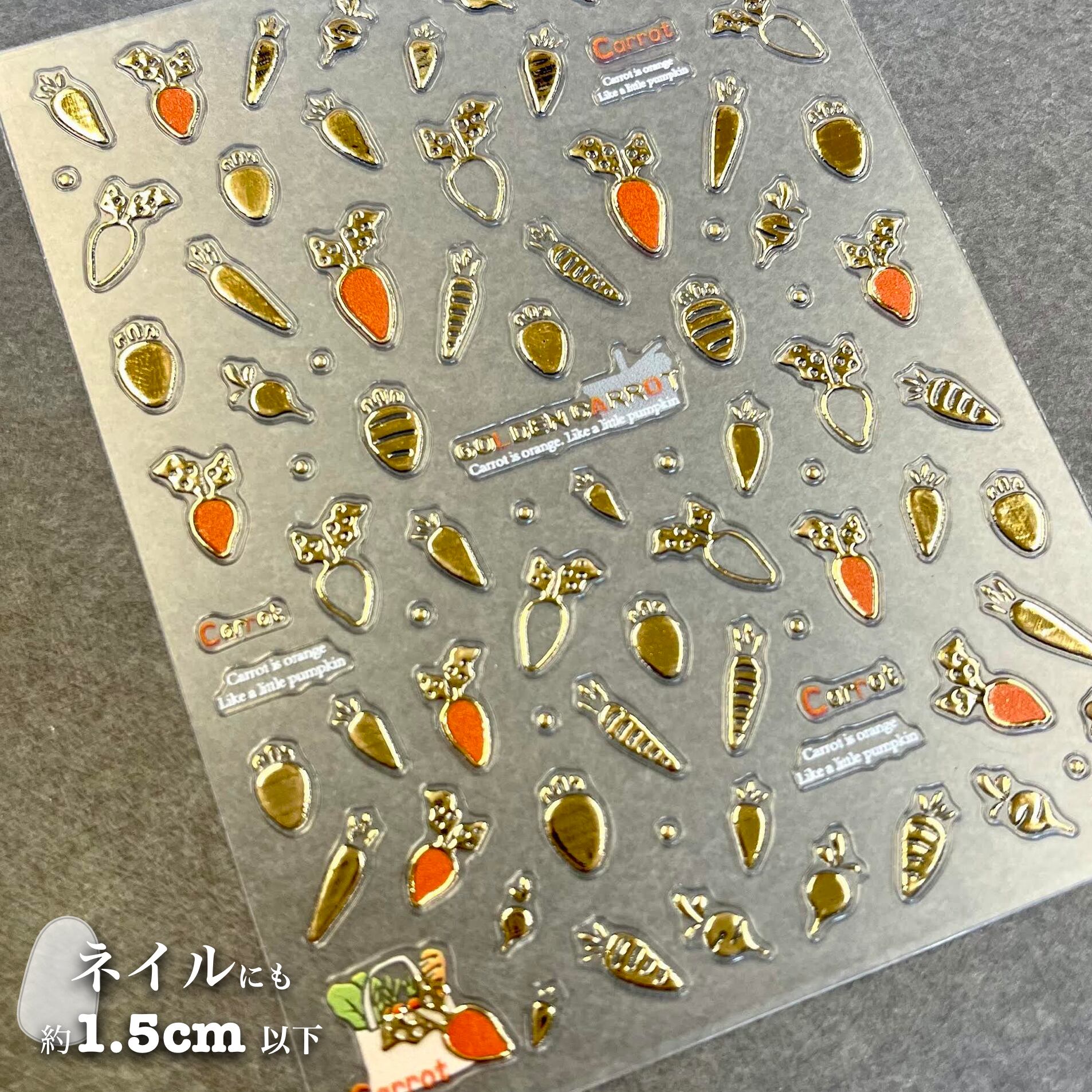 【 キャロット シール 】1シート ネイル ゴールド ニンジン オレンジ 人参 馬 幸運 自然 可愛い 美容 手 男 女 手紙 便箋 スタンプ 立体 ステッカー おしゃれ 結婚式 招待状 ウエディング 引き出物 ラッピング プレゼント カード