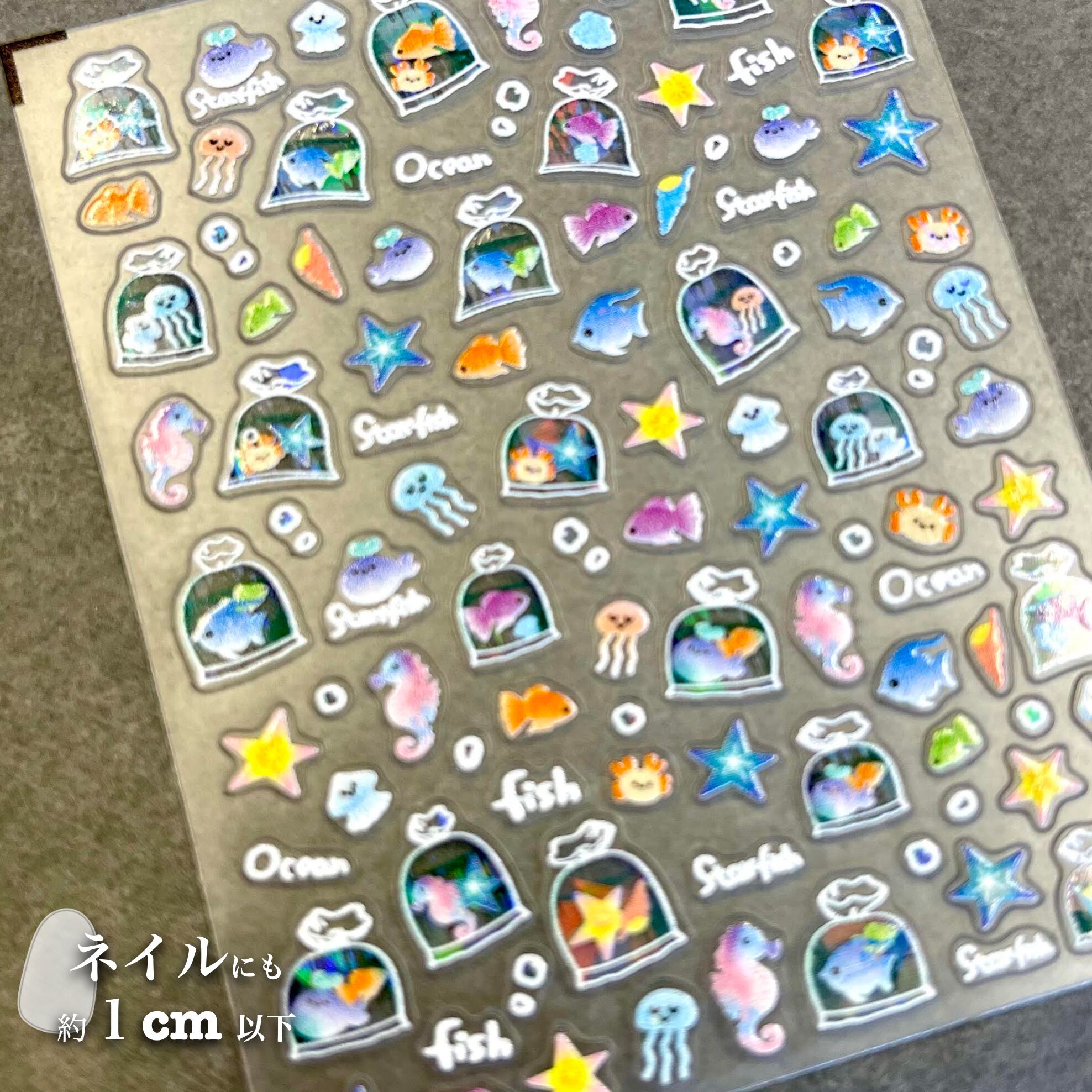 【 水族館 海 シール 】1シート ネイル 金魚 クラゲ 魚 カニ ヒトデ 物語 幸運 自然 可愛い 美容 手 男 女 手紙 便箋 スタンプ ステッカー おしゃれ 結婚式 招待状 ウエディング 引き出物 ラッピング プレゼント カード