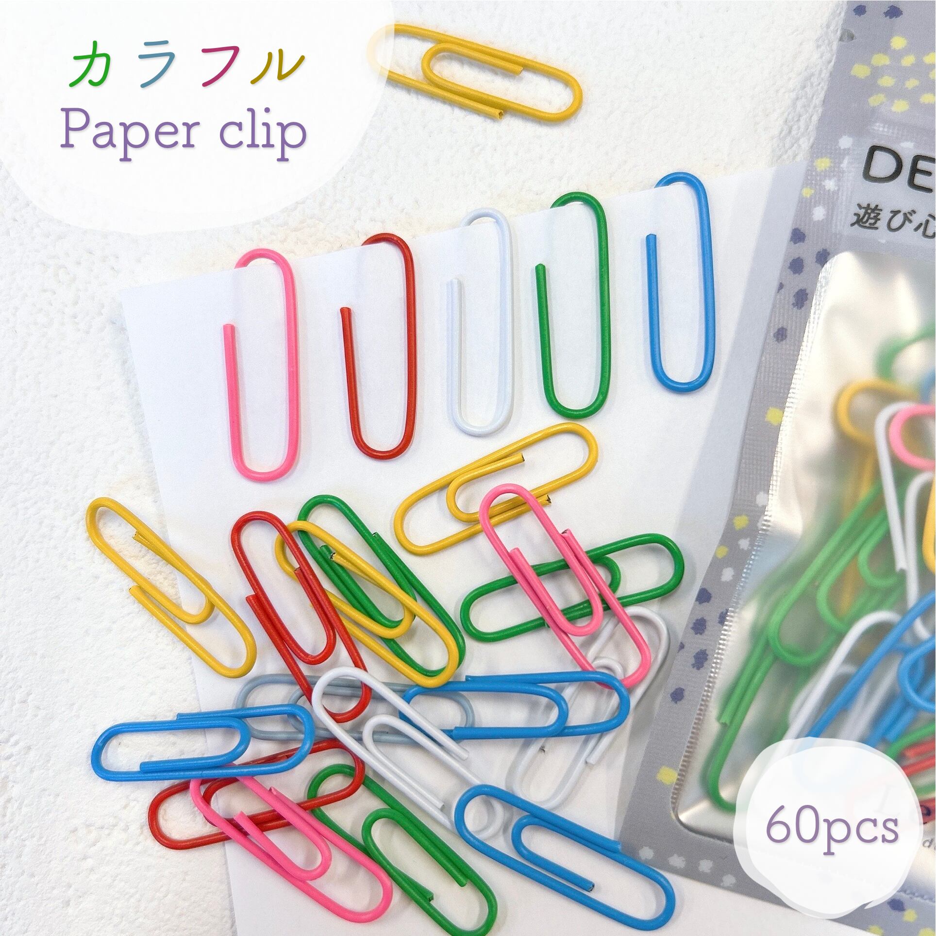 【 カラフル ゼムクリップ 】60個入 アソート ペーパー 新聞 雑誌 名刺 資料 収納 可能 文房具 ゼム クリップ バインダー オフィス 学校 会社 筆記用具 事務 用品 文具 雑貨 おしゃれ かわいい デスク アイテム ピンク ブルー グリーン イエロー ホワイト レッド