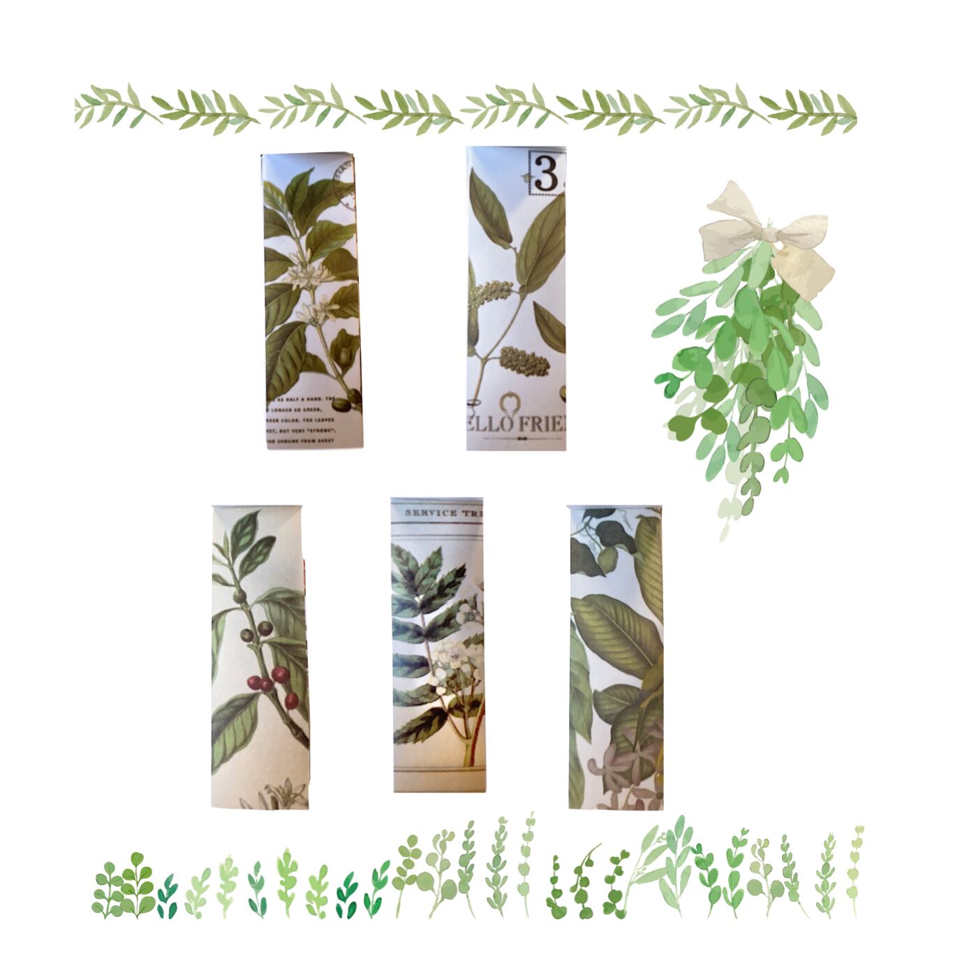 【 可愛いグリーンリーフ柄のマスキングシールブック 】