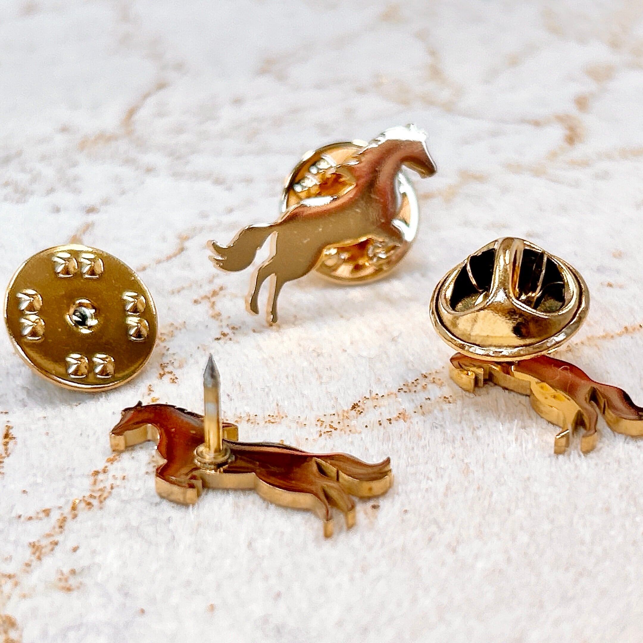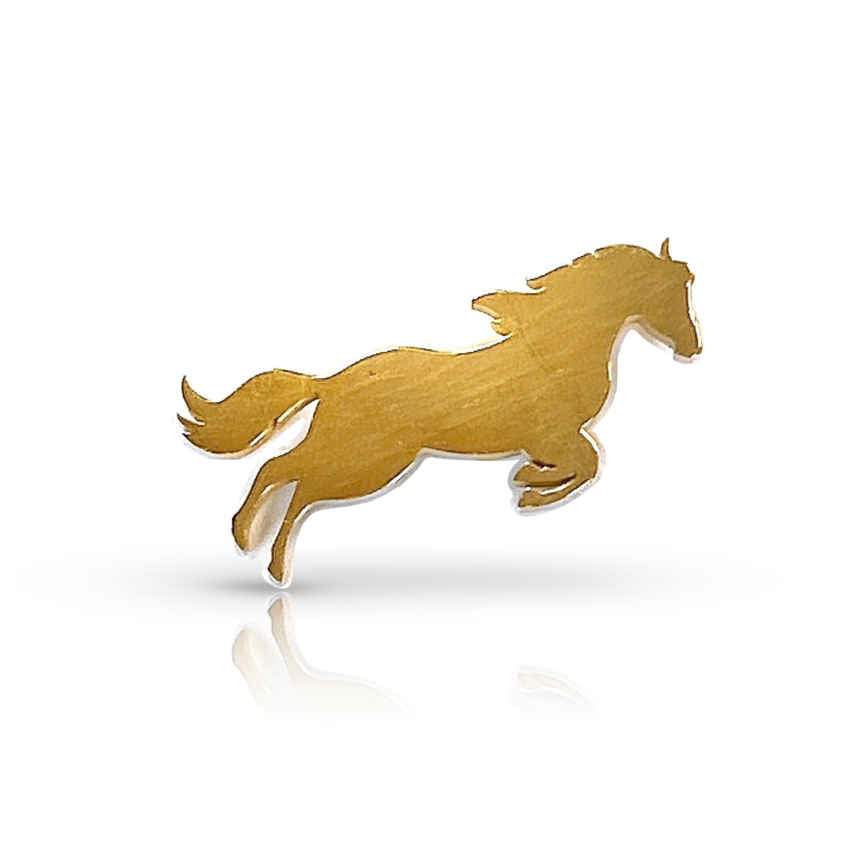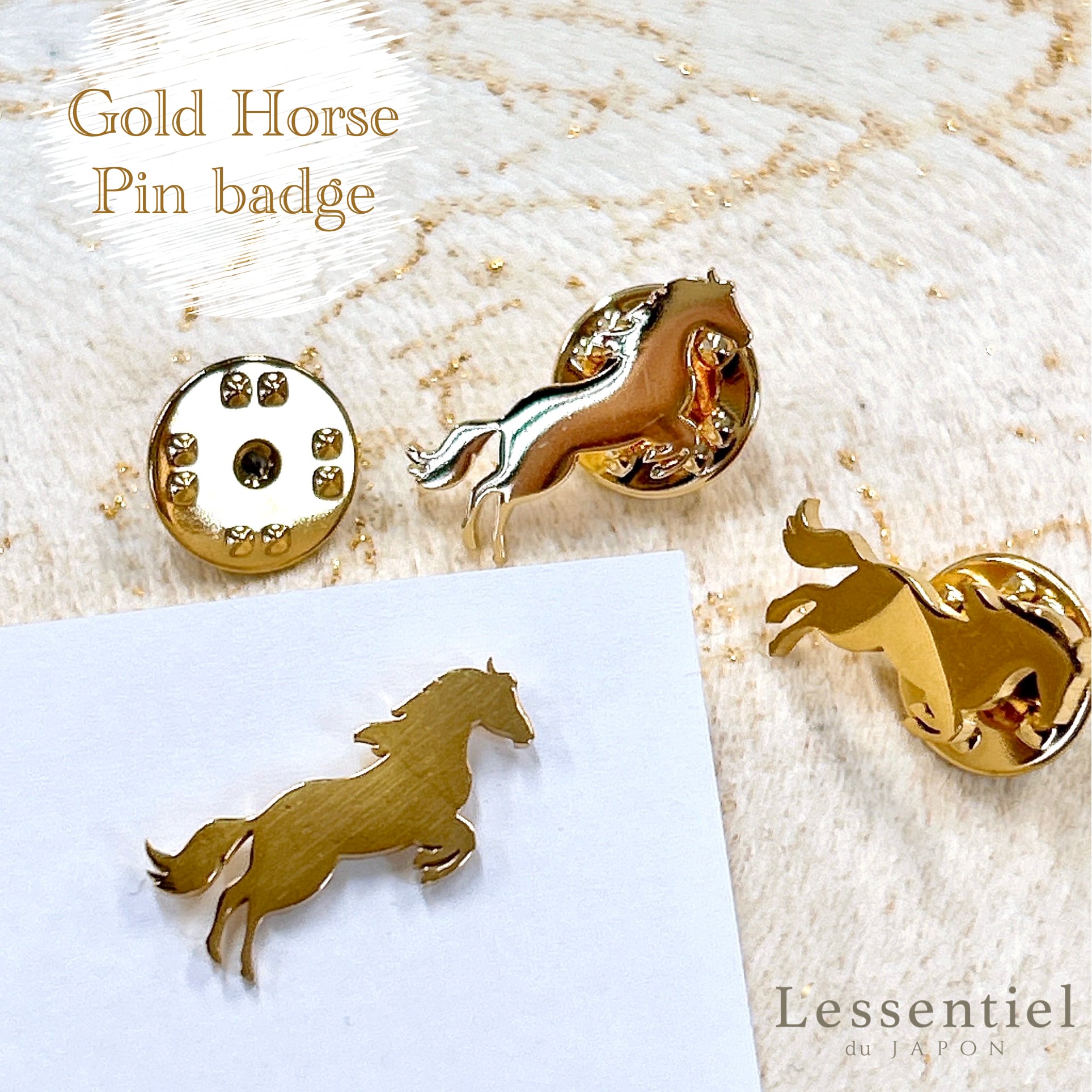 煌びやかなゴールドが目を引く、躍動感のある馬をモチーフにした素敵なピンバッジです。
