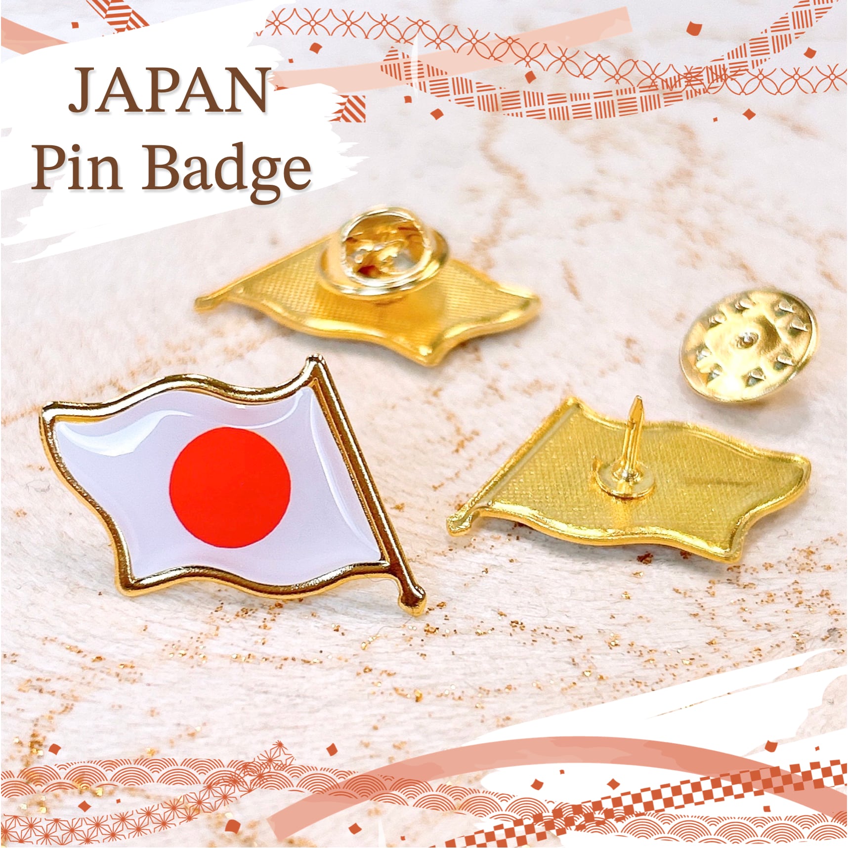 【 日本 国旗 ピンバッジ 】 1個 ゴールド 紅白 ジャパン 日の丸 JAPAN Japan flag 日章旗 旗 フラッグ 平和 世界 シンボル スポーツ スポーツ観戦 応援 国際交流 海外留学 ピンブローチ 胸飾り 装飾ピン アンティーク アクセサリー ジュエリー ファッション 小物 ワンポイント レディース コサージュ プレゼント おしゃれ アクセント かわいい