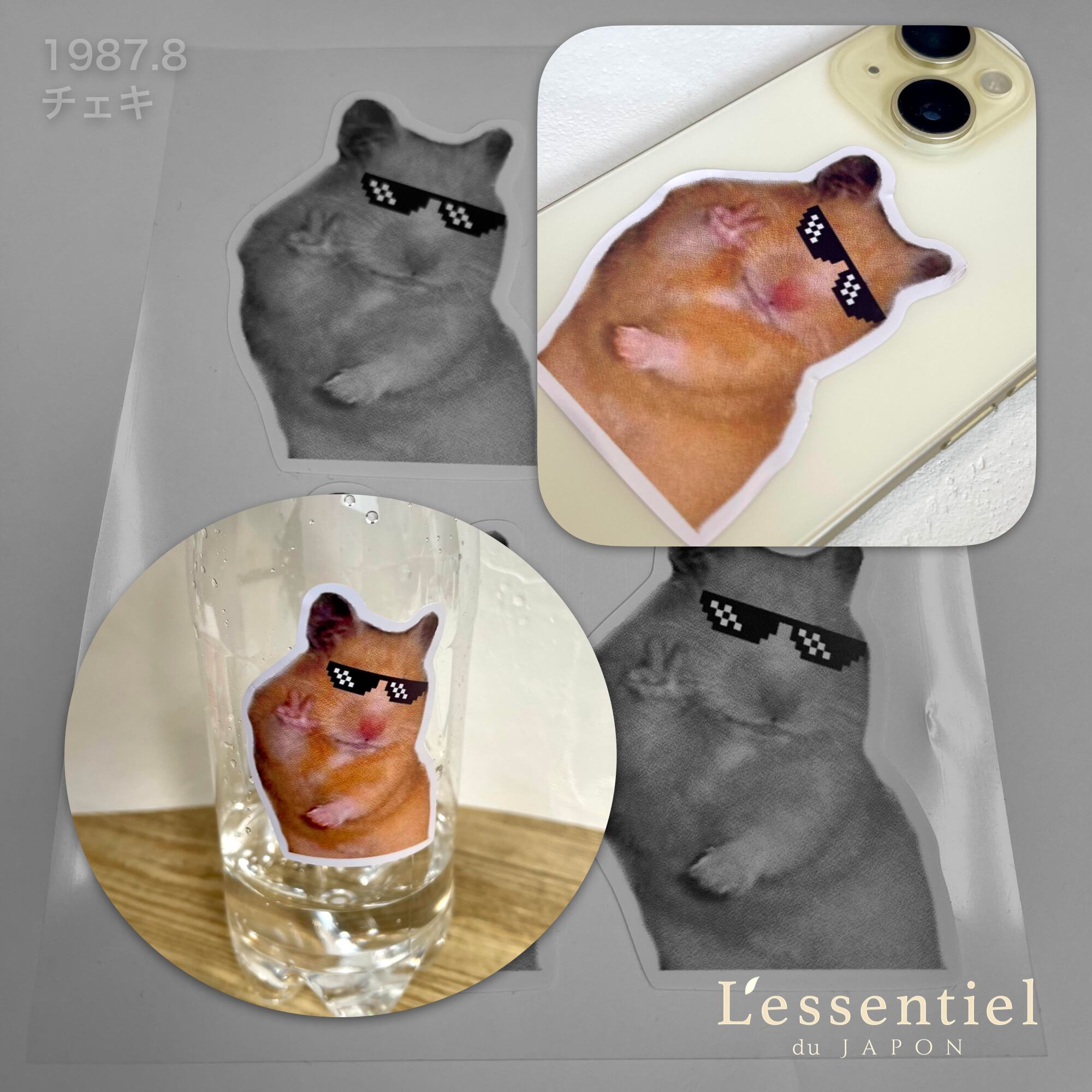 可愛らしいサングラスをかけたハムスターがデザインされたステッカーで、