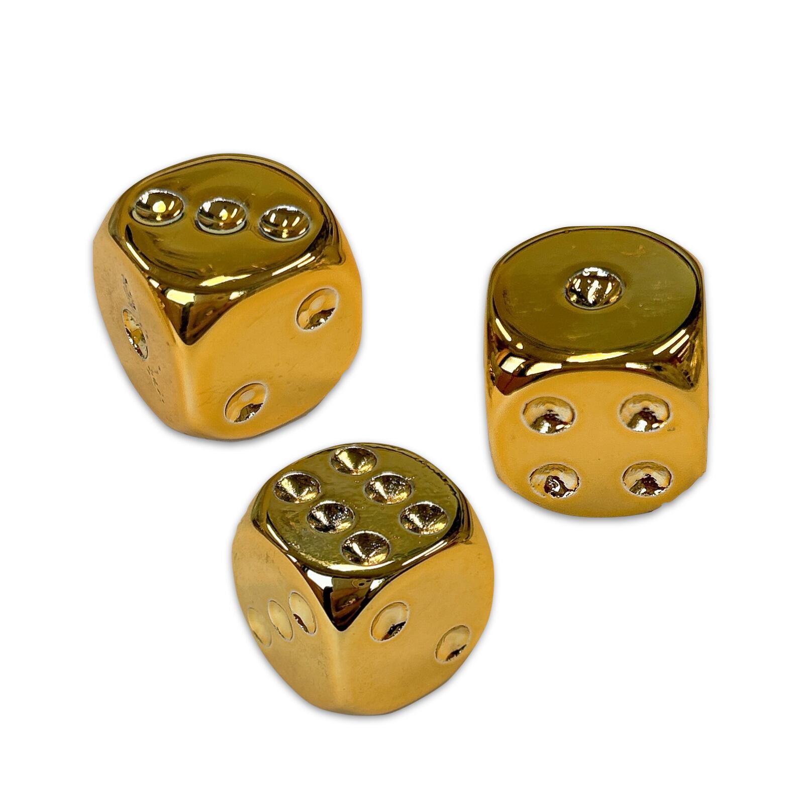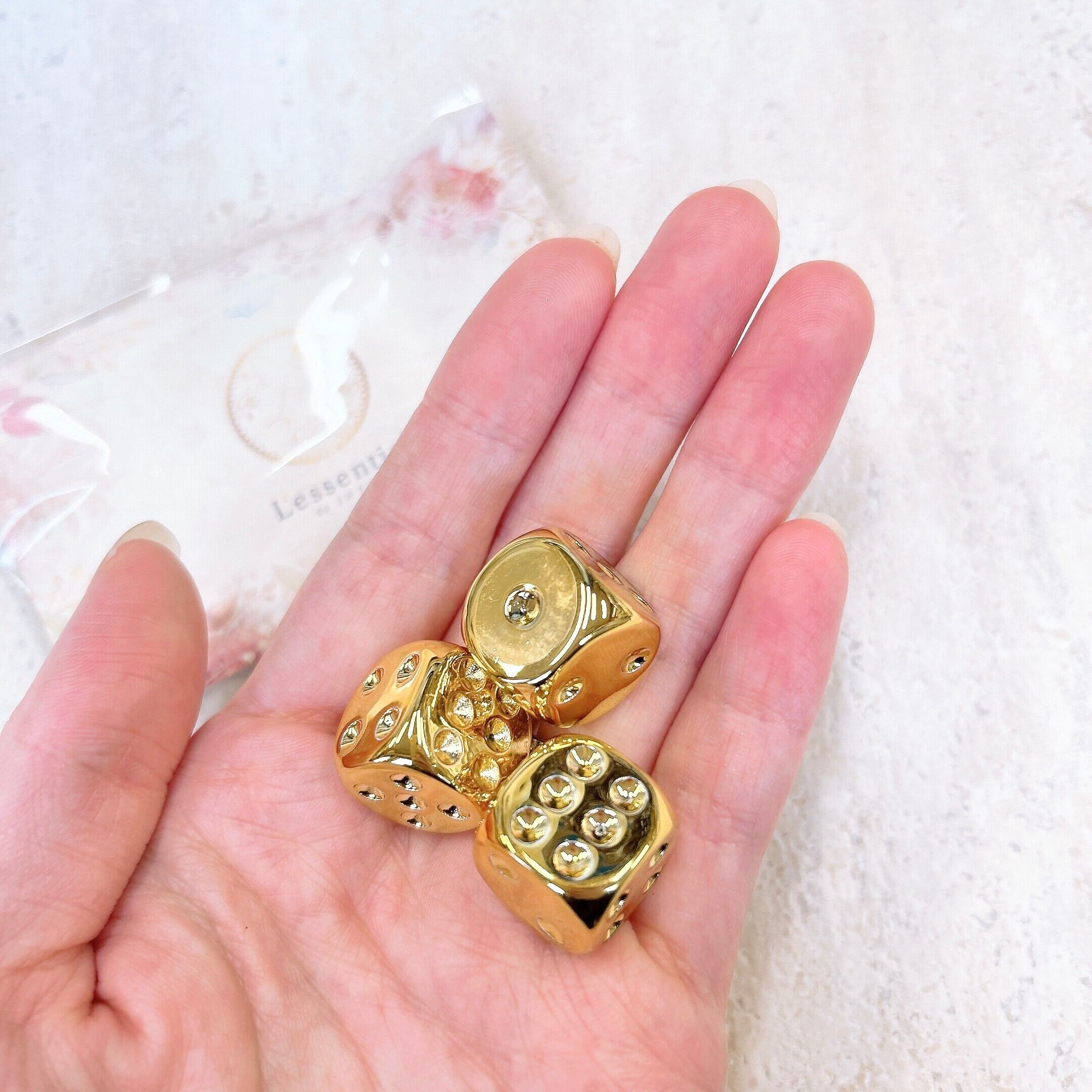 ゴールドに輝く美しいシルエットのサイコロ3個入りです。