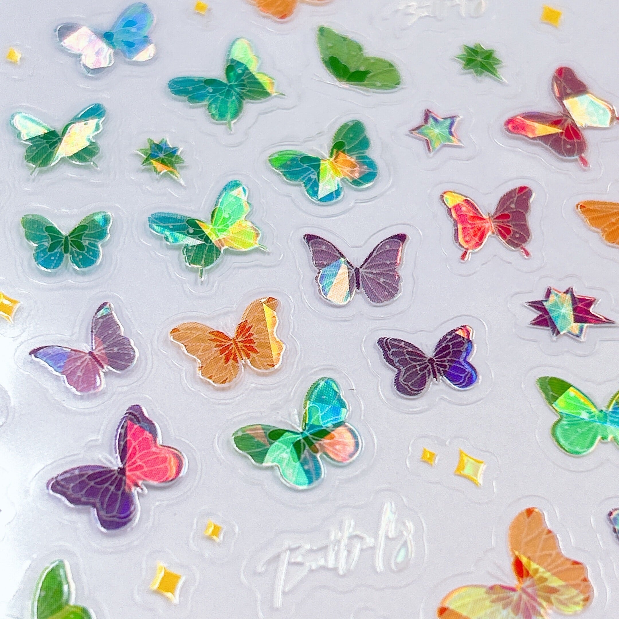 ■内容:キラキラホログラムクリアバタフライ ネイルシール × 1シート