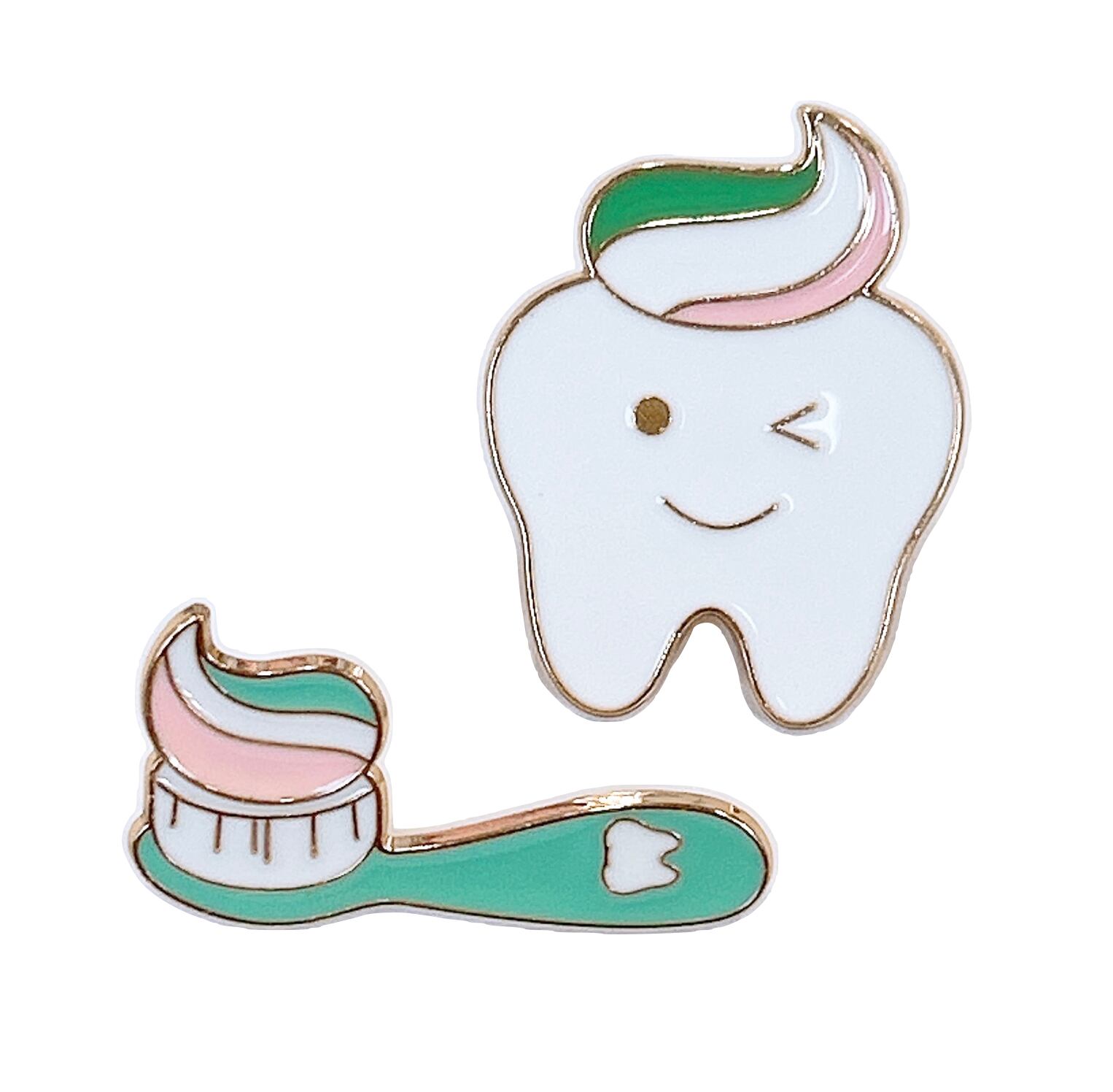 【 ハッピーティースちゃん と 歯ブラシ ピンバッジ 】 2個セット 歯 歯医者 歯磨き 歯磨き粉 虫歯 歯科 小児歯科 歯科医院 ドクター 衛生士 子ども キッズ ご褒美 顔 ポップ ピンブローチ 胸飾り 装飾ピン イベント アクセサリー ジュエリー ファッション 小物 ワンポイント プレゼント ギフト 贈り物 おしゃれ アクセント かわいい