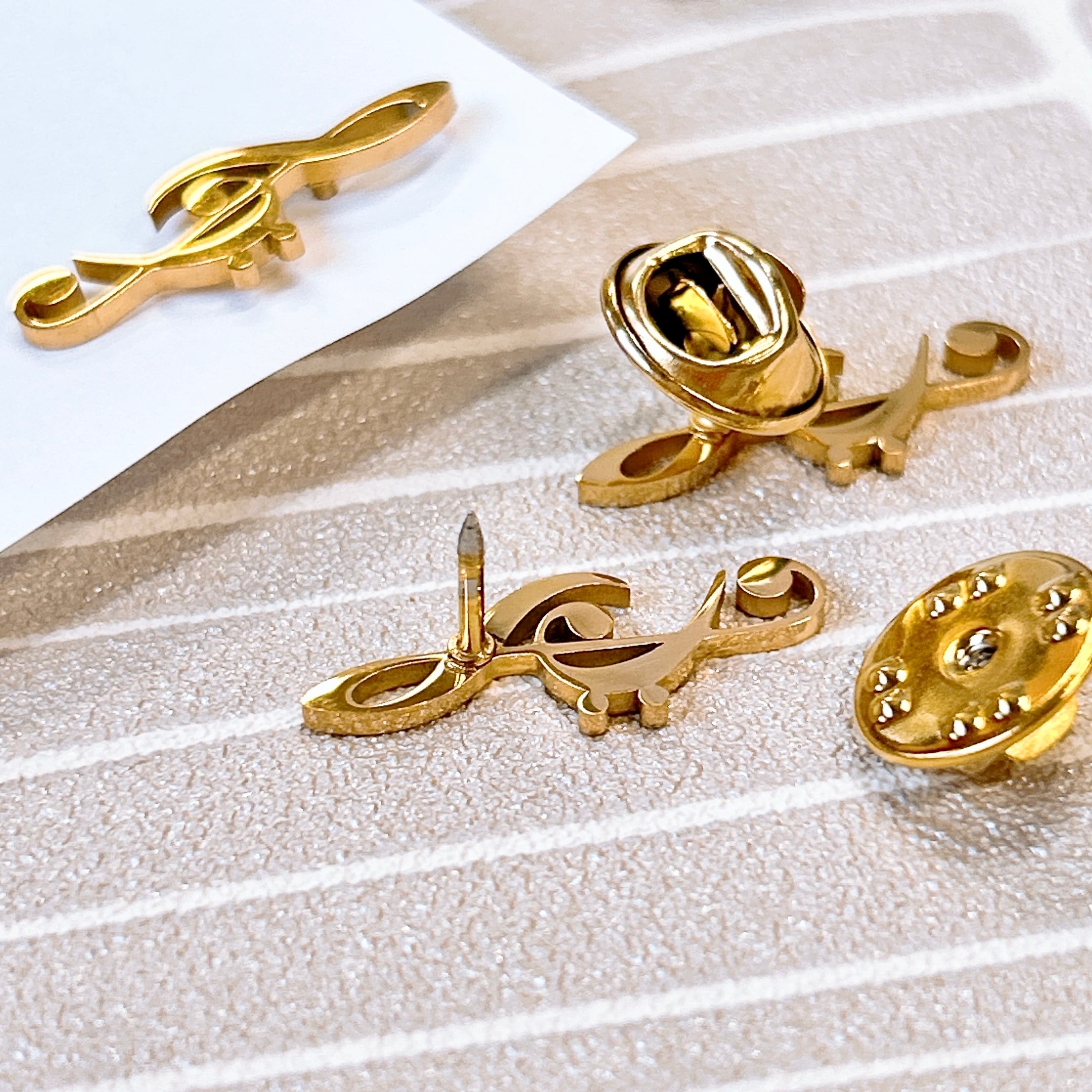 【 ト音ヘ音記号 ピンバッジ 】 1個 ゴールド ト音記号 ヘ音記号 大譜表 吹奏楽 音楽 学校 コンクール 発表会 レッスン 習い事 コンサート 演奏会 ピンブローチ 胸飾り 装飾ピン イベント アクセサリー ジュエリー ファッション 小物 ワンポイント プレゼント ギフト 贈り物 おしゃれ アクセント かわいい