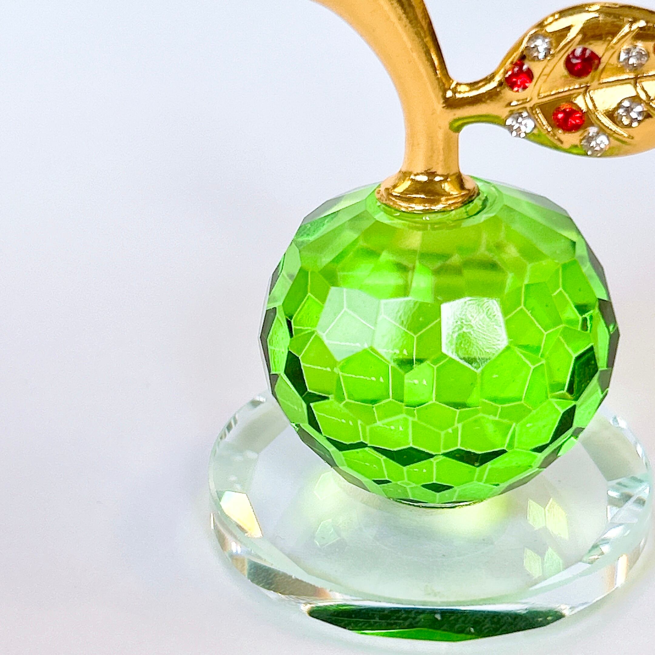 【 飾れる お守り 】 1個 クリスタル GREEN APPLE グリーン アップル 緑 りんご 運気アップ 金運 風水 浄化 幸運 林檎 青森 果物 くだもの ラインストーン ゴールド ガラス ガラス細工 ミセス ミスター サンキャッチャー インテリア オブジェ 装飾 飾り 玄関 置物 周波数 エネルギー キラキラ 高級 おしゃれ かわいい