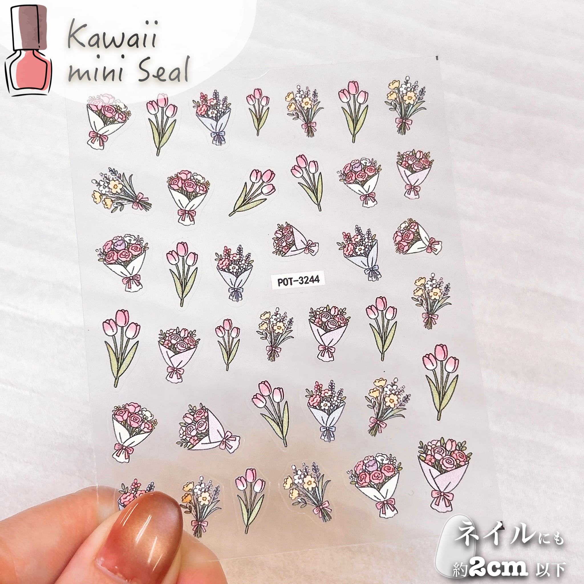 【 ネイル シール 】 ピンク フワラー ブーケ 花束 イラストタッチ風 ネイルアート ジェルネイル 生活 自然 可愛い 美容 手 爪 デート 女 男 手紙 便箋 スタンプ エンボス 3D 立体 ぷく ぷっくり ステッカー おしゃれ 結婚式 招待状 ラッピング プレゼント カード