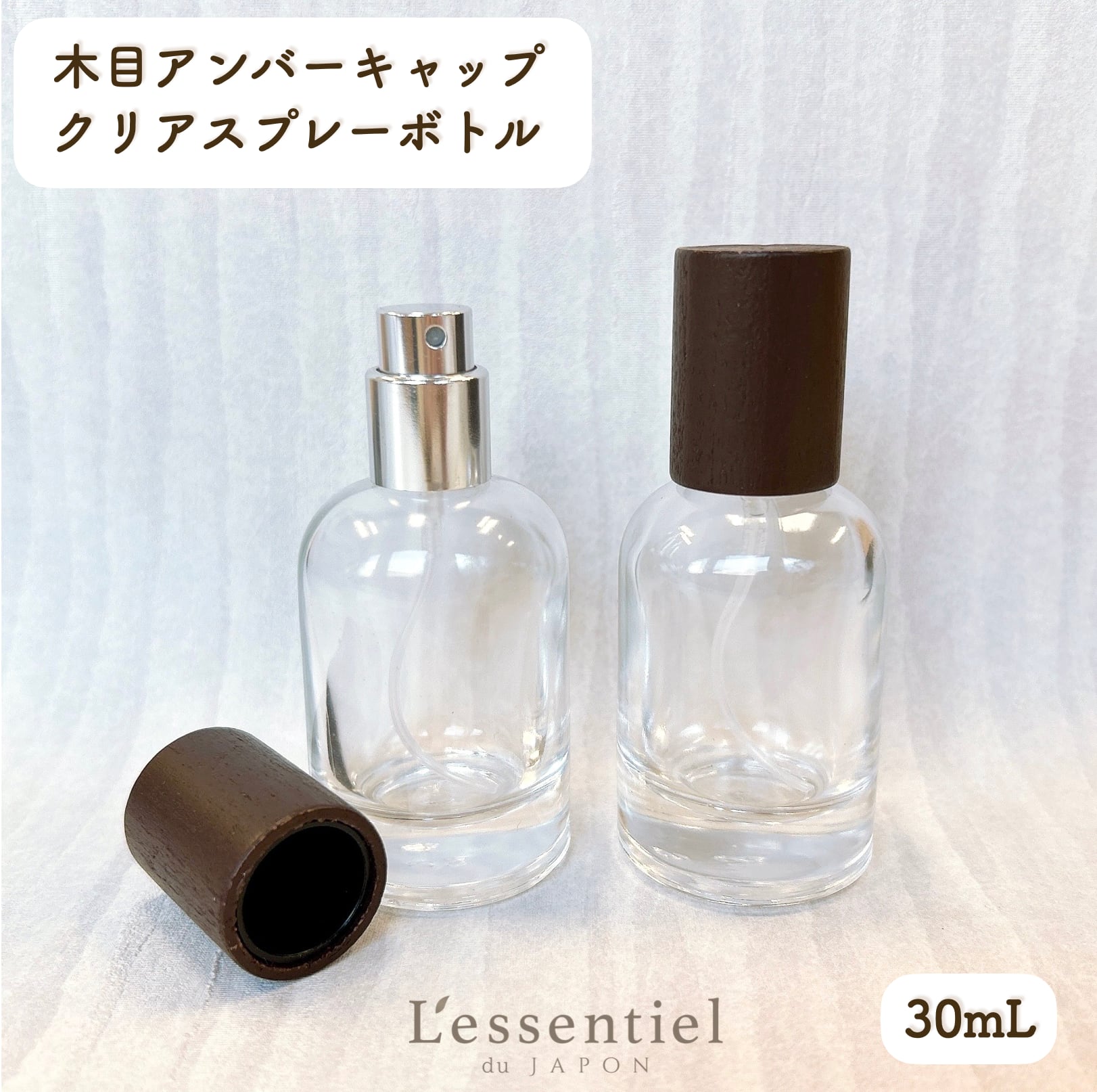 【 木目 アンバー キャップ クリア スプレー ボトル】30ml 1本 丸肩 円柱 ガラス ミスト 容器 厚底 ダーク 茶色 アロマ 香水 フレグランス 掃除 美容室 噴霧 旅行 化粧水 霧吹き ブランド 手作り ハンドメイド 詰替容器