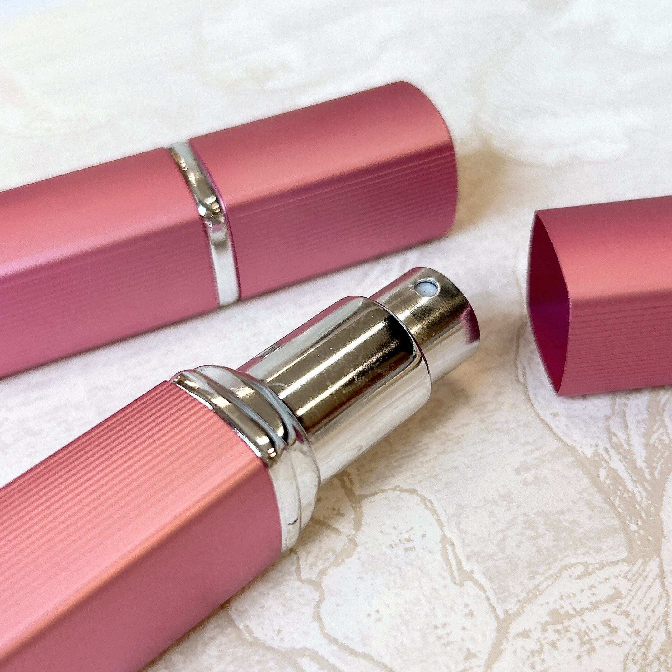 【 スチール スクエア アトマイザー 12ml】1本 マット ピンク スプレー 容器 詰替 艶消し 詰替容器 空容器 スティック ペン型 噴射 香水 フレグランス 化粧水 美容 ミスト 簡単 上品 高級 大人 携帯 持ち運び 旅行 軽量 スリム コンパクト 手作り ハンドメイド おしゃれ シンプル かわいい プレゼント ギフト
