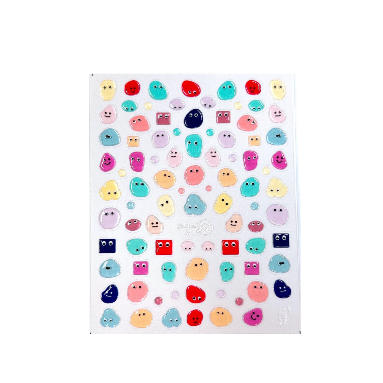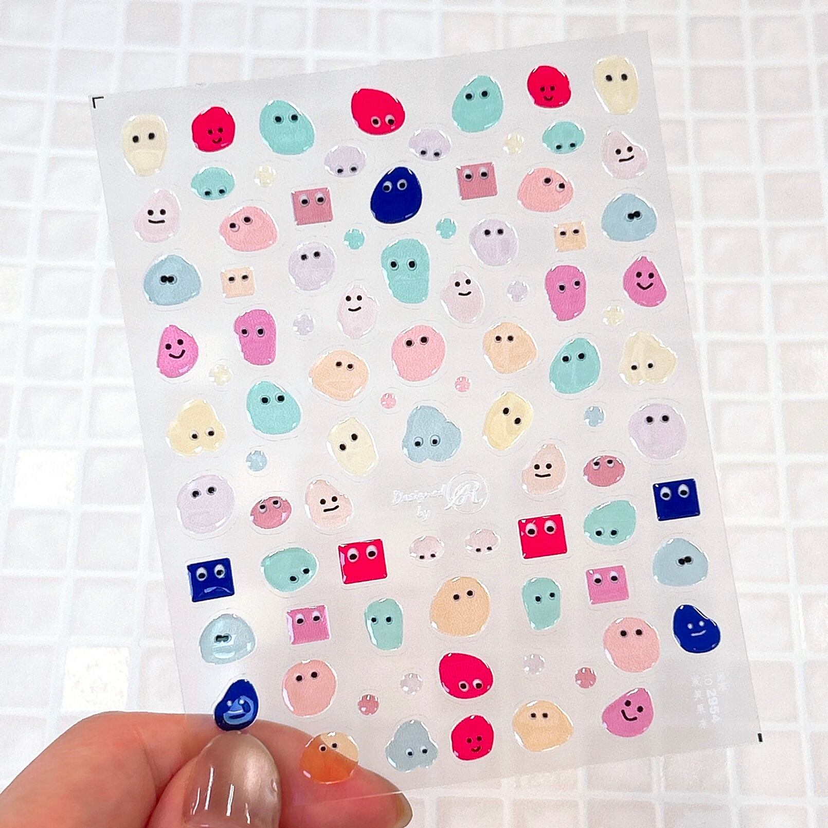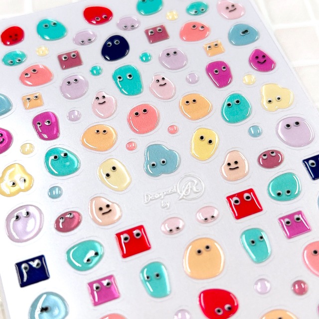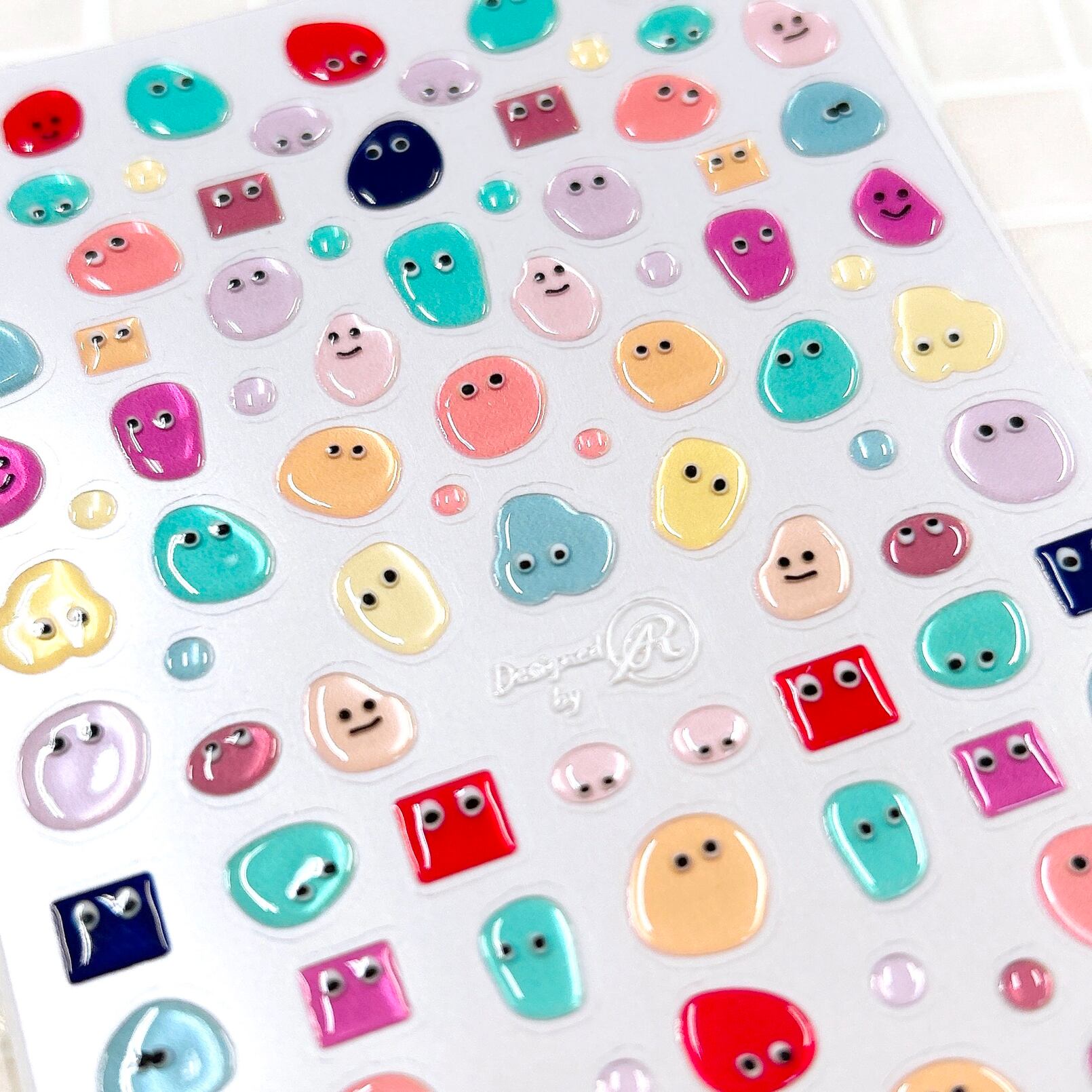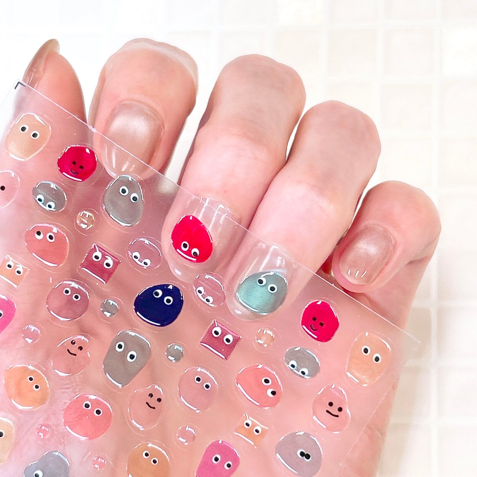 【 ネイル シール 】 液体ちゃん スライム 透明 スケルトン カラフル 顔 ポップ かわいい 3D 立体 ぷっくり エンボス 簡単貼るだけ ネイルパーツ ネイルアート ジェルネイル 生活 自然 可愛い 美容 手 爪 デート 女 男 手紙 便箋 スタンプ ステッカー おしゃれ ラッピング プレゼント カード シール交換 シール帳