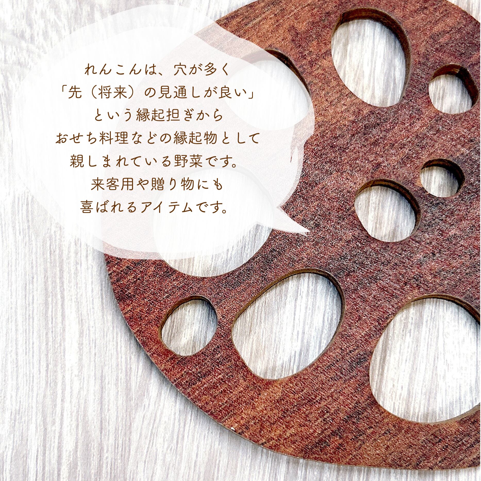 【 れんこん コースター】1枚 木製 ダークブラウン ウッド 蓮根 レンコン 縁起 野菜 カップコースター インテリア テーブル シンプル ナチュラル 鍋敷き ギフト プレゼント 贈り物 お祝い 新築祝い おしゃれ かわいい キッチン