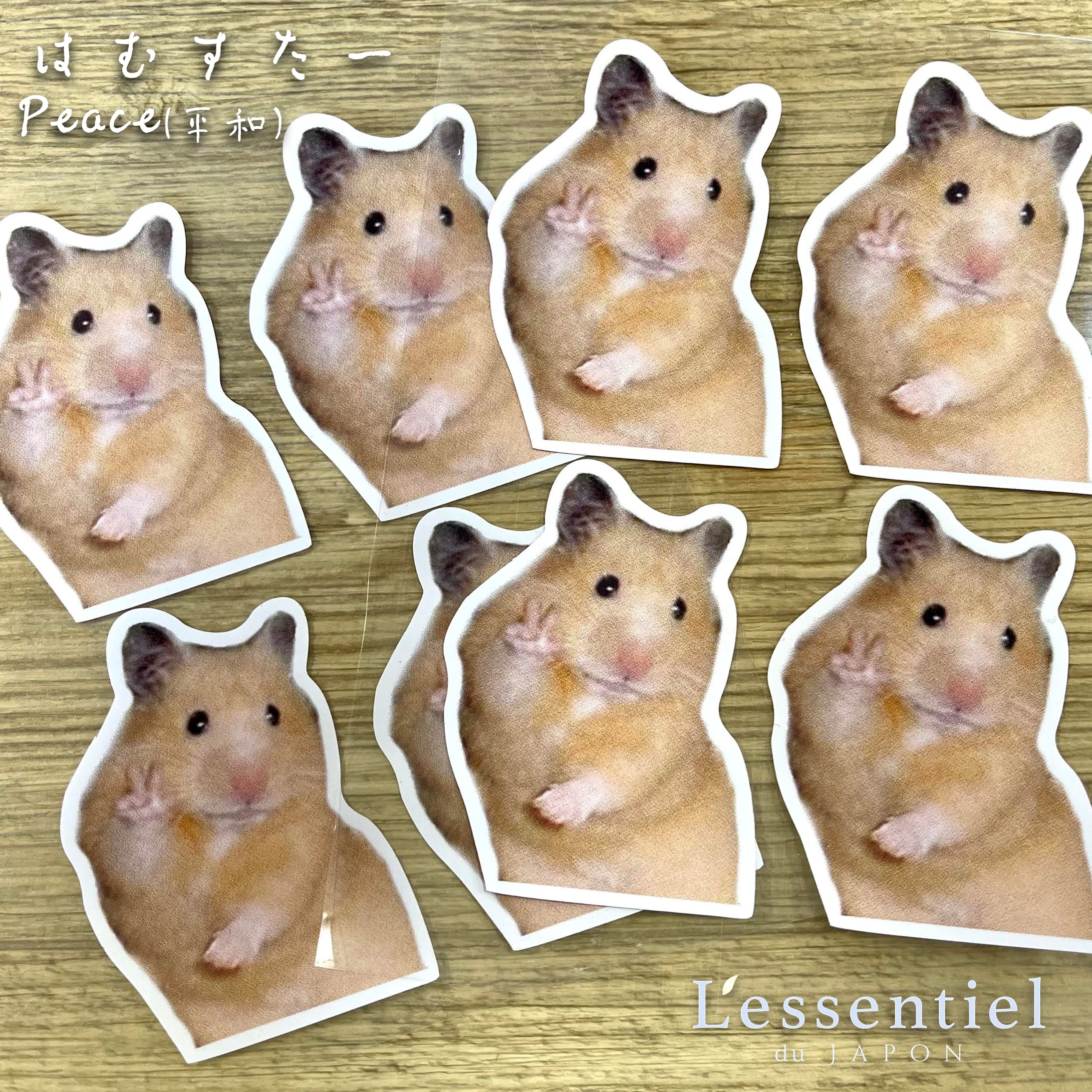 ピースマークをあしらった可愛いハムスターがデザインされたステッカーで、