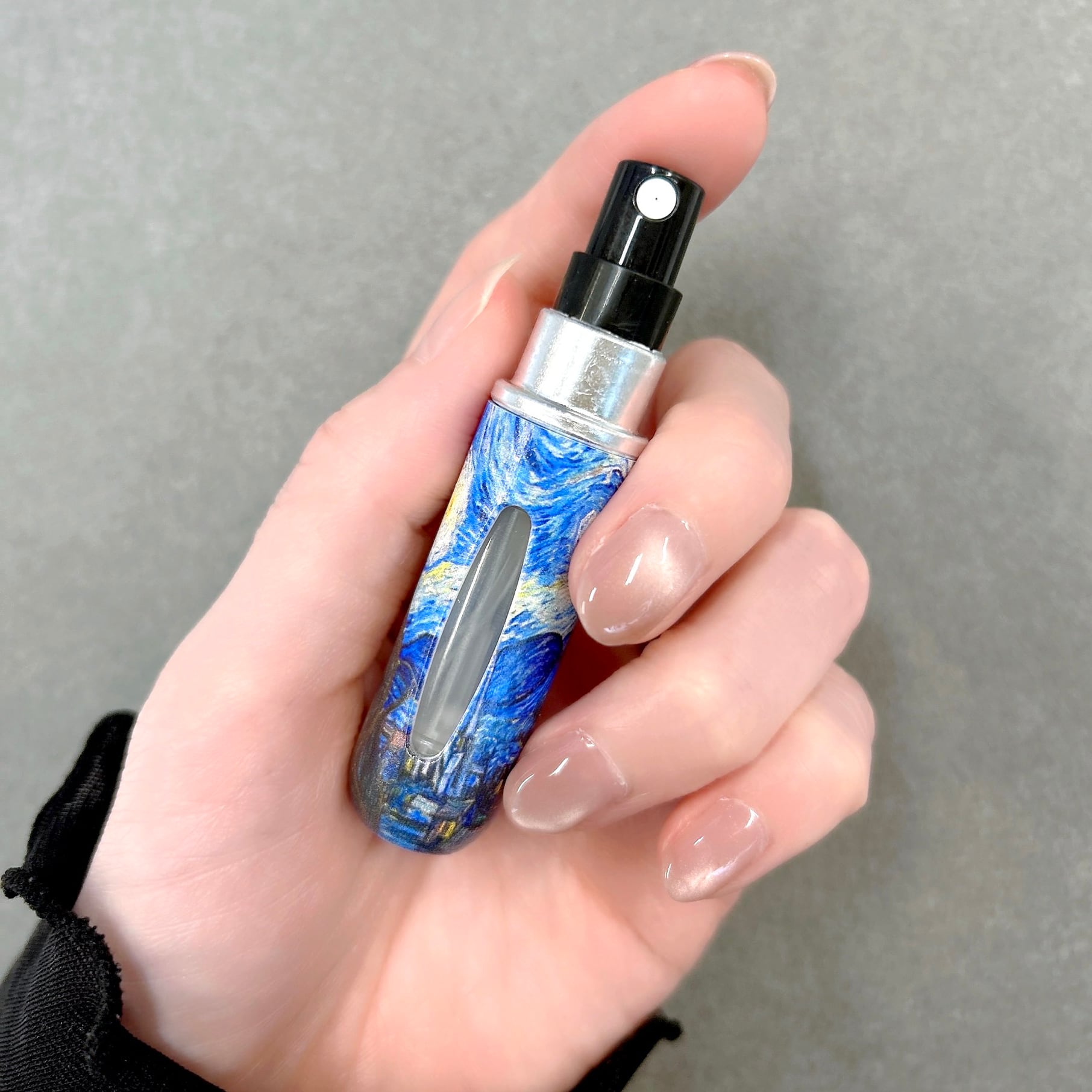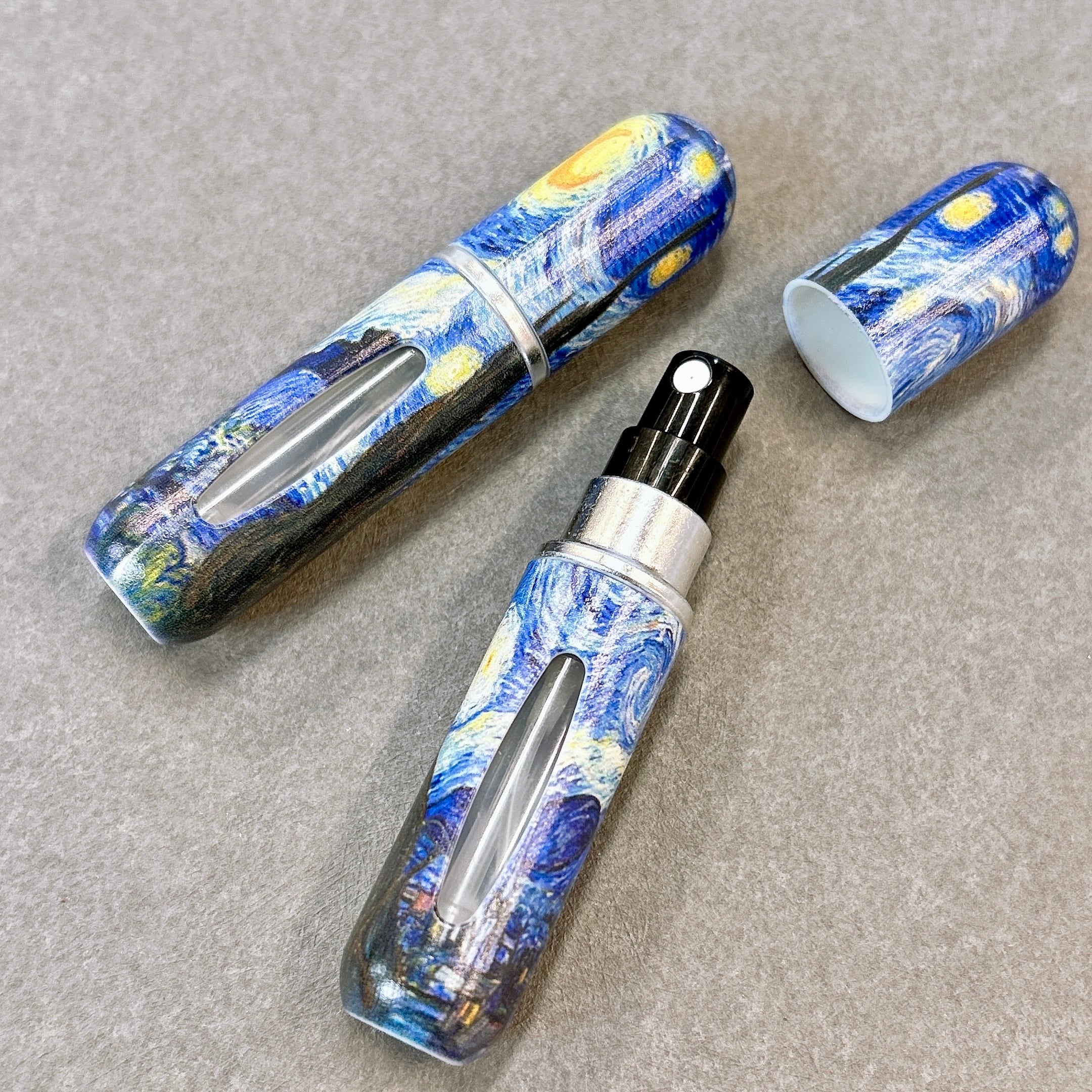 【ゴッホ 星月夜 香水 アトマイザー 5ml】1本 クイックチャージ式 簡単 スプレー ボトル 底部充填式 残量が分かる フレグランス 詰替 容器 上品 高級 大人 携帯 持ち運び 旅行 軽量 スリム コンパクト 手作り ミスト ハンドメイド ギフト プレゼント アート 絵 名画 油絵 絵画 画廊 ギャラリー 作品 芸術 美術 美術館 ポスト印象派 おしゃれ