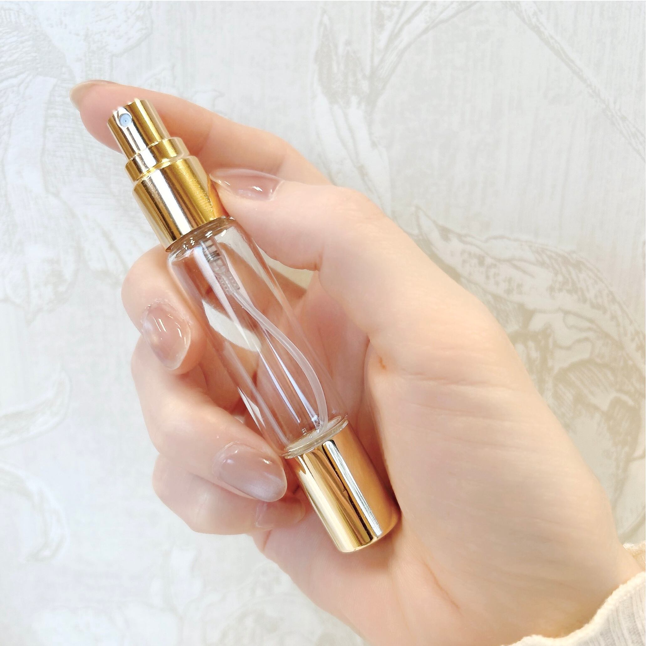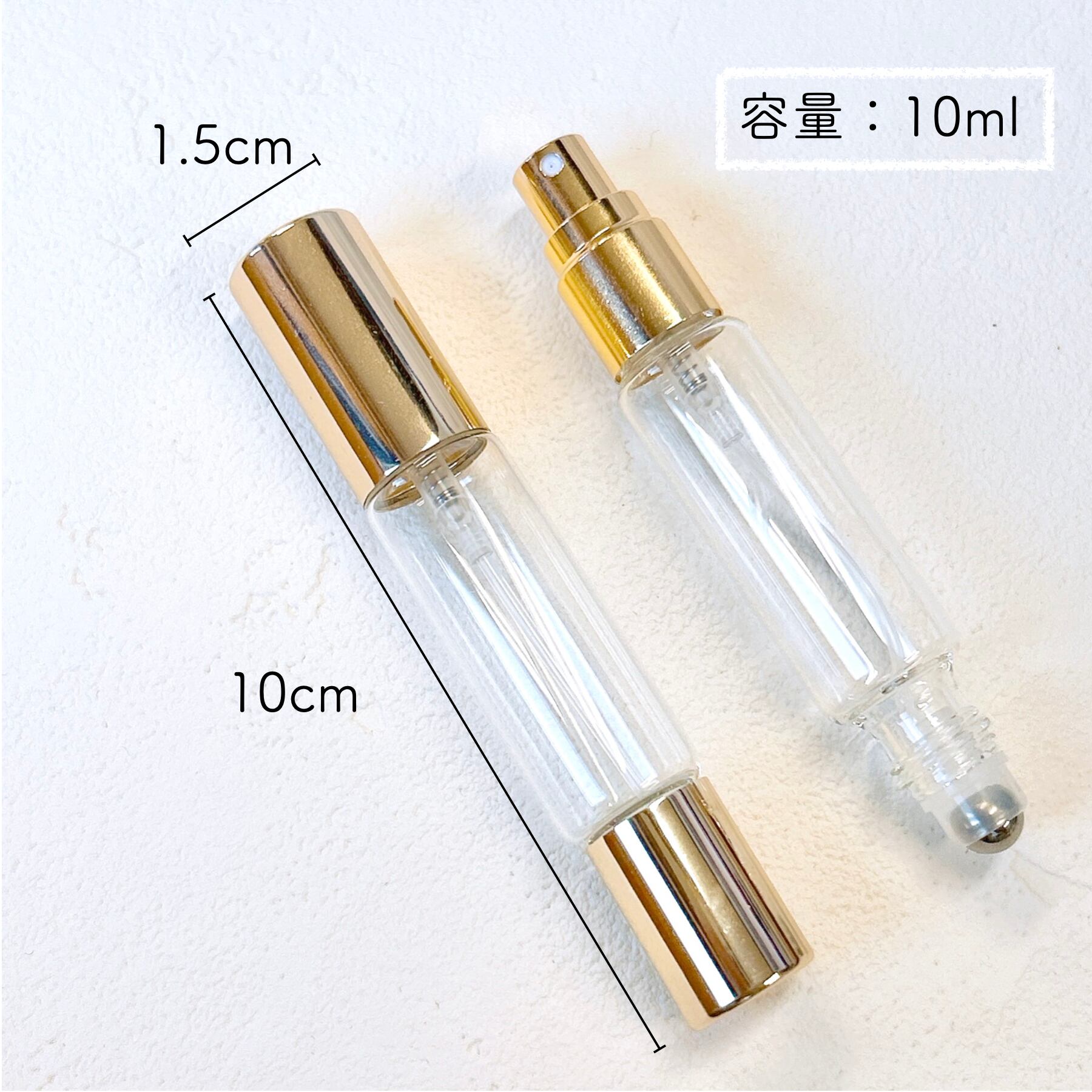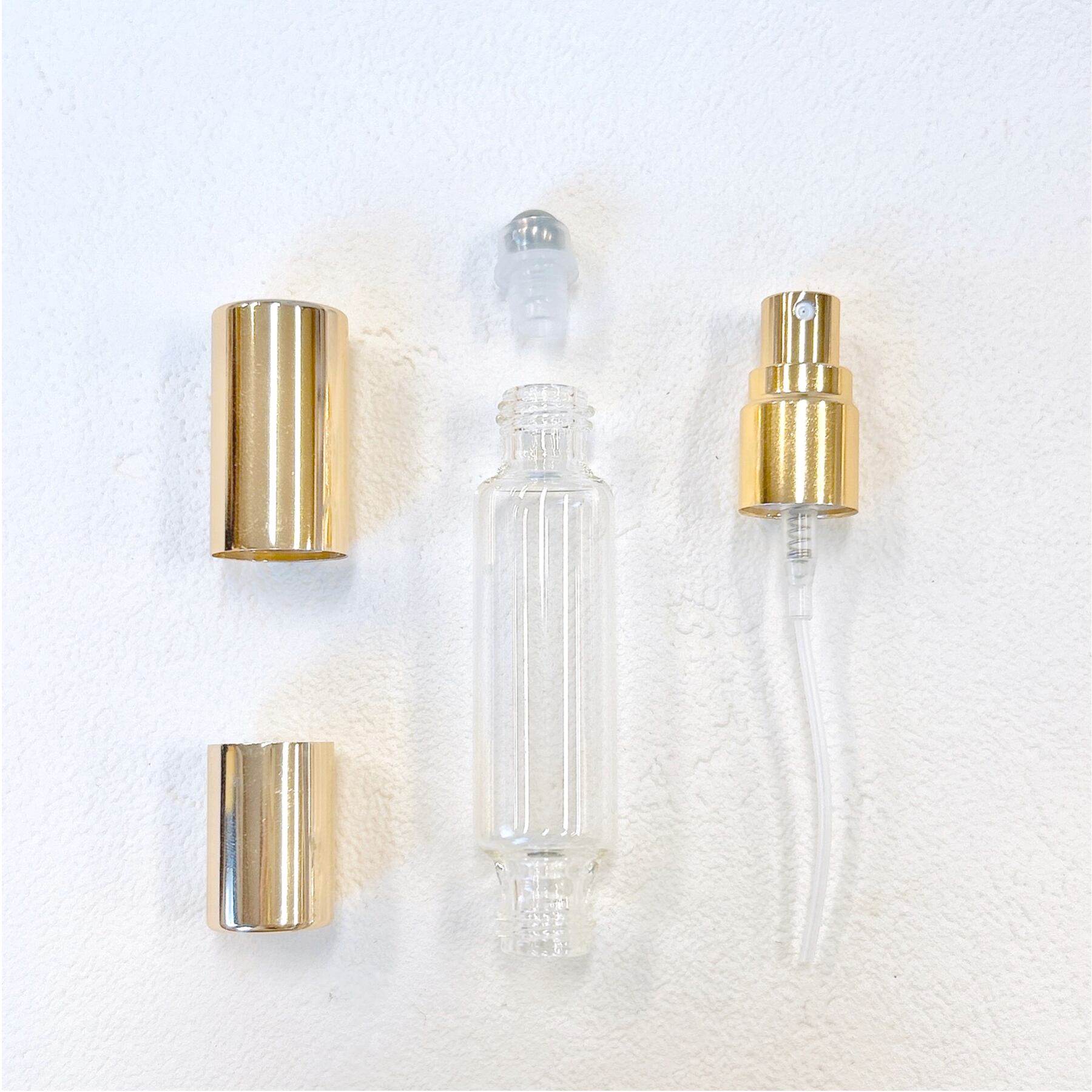 【 2WAY 多機能 アトマイザー ガラス ボトル 】 ゴールド 10ml 1本 ロールオン スプレー クリア 透明 容器 メタリック キャップ 蓋 マルチ シーン 香水 フレグランス パフューム ミスト 詰替 保湿 便利 シンプル スリム アロマ 精油 エッセンシャルオイル 美容液 化粧水 軽量 ハンドメイド 手作り ギフト プレゼント おしゃれ かわいい