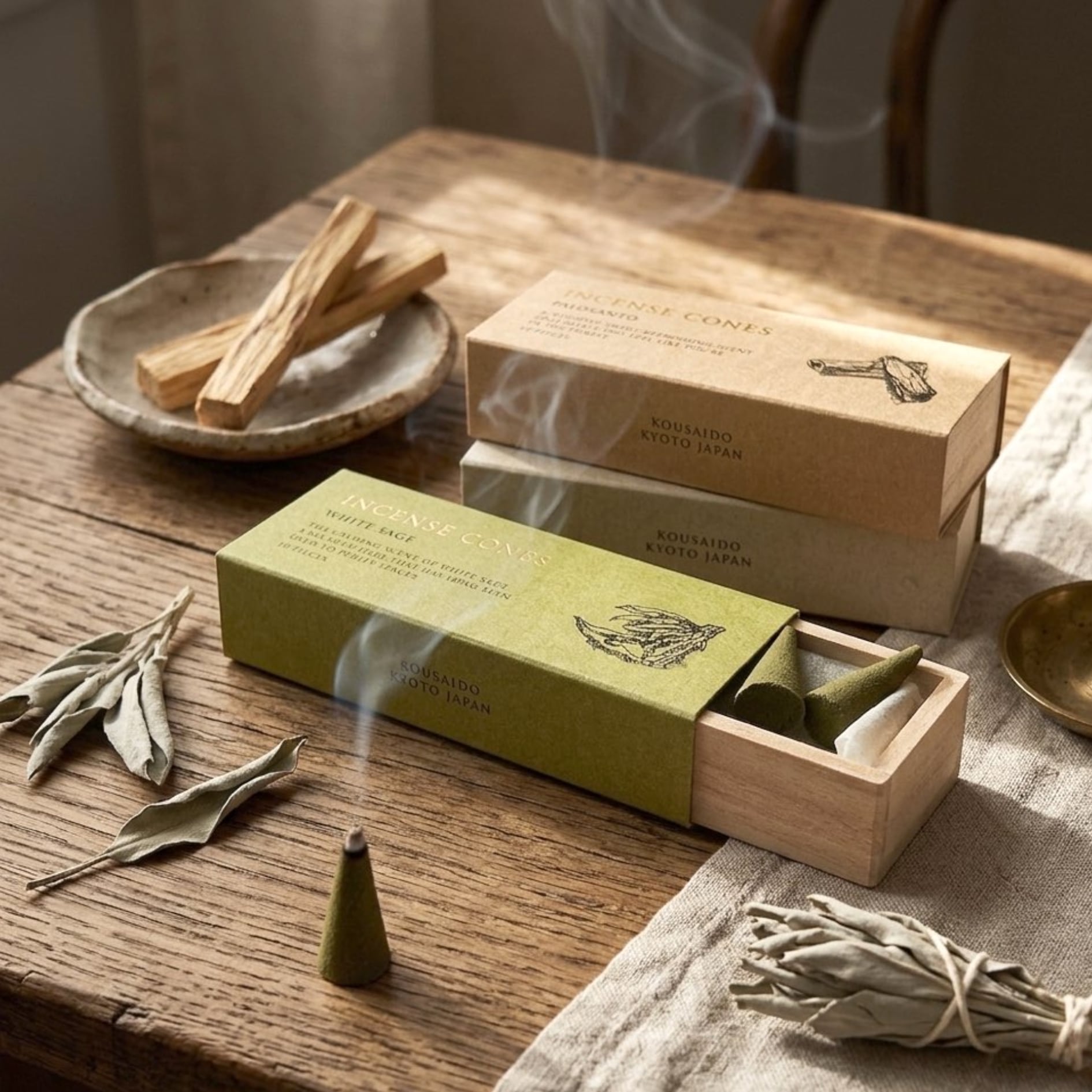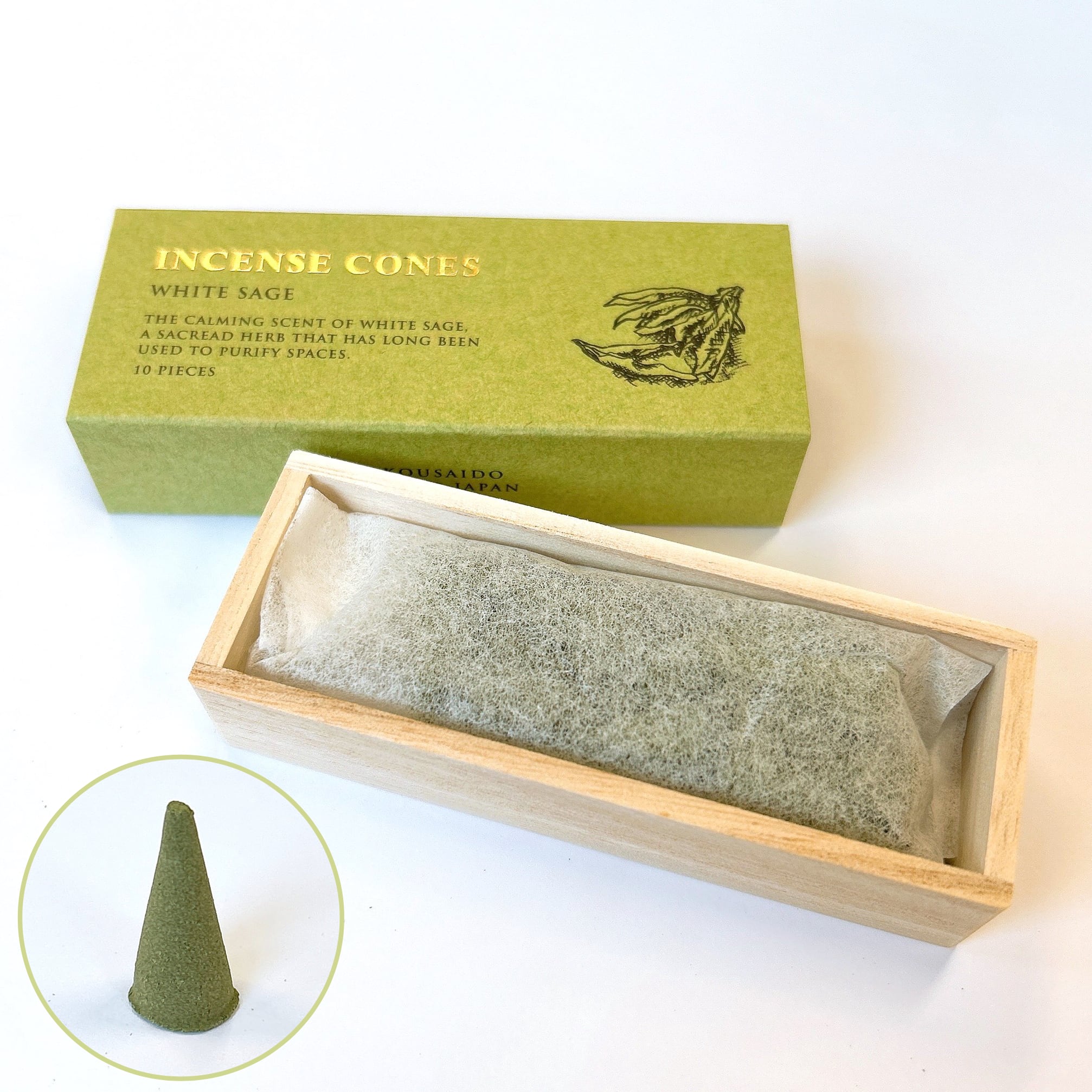 【 INCENSE CONES - ホワイトセージ -】10個入 1箱 香彩堂 お香 白檀 日本製 京都 インセンス コーン型 コーンタイプ 天然 安眠 爽やか 初心者 線香 フレグランス 外出 旅行 ポケット リラックス リフレッシュ 気分転換 切り替え デスク ワーク 勉強 部屋 芳香 おうち時間 プレゼント プチ ギフト インテリア 空間 贈り物 ヨガ 瞑想 浄化 おしゃれ かわいい