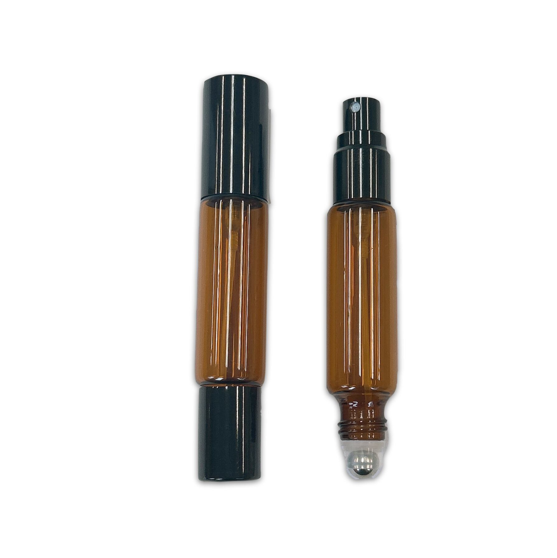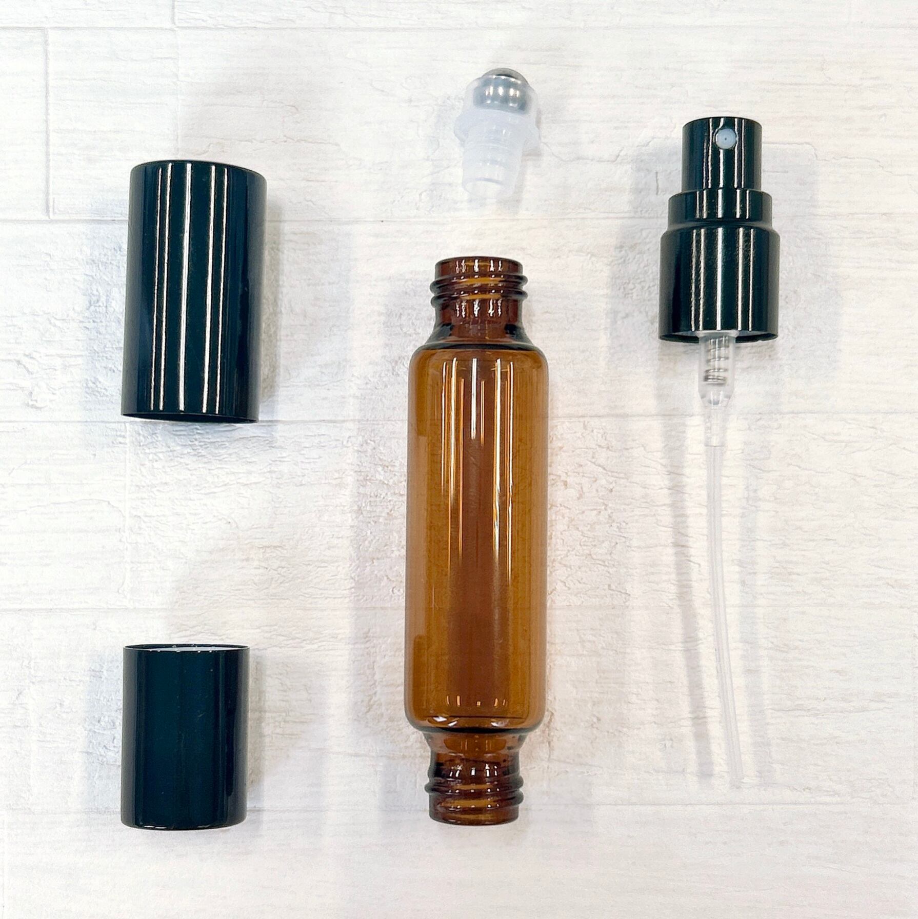 【 2WAY 多機能 アトマイザー ガラス ボトル 】10ml 1本 ブラウン 黒キャップ ロールオン スプレー 遮光 容器 マルチ シーン 香水 フレグランス パフューム ミスト 詰替 保湿 便利 シンプル スリム アロマ 精油 エッセンシャルオイル 美容液 化粧水 軽量 ハンドメイド 手作り ギフト プレゼント おしゃれ かわいい