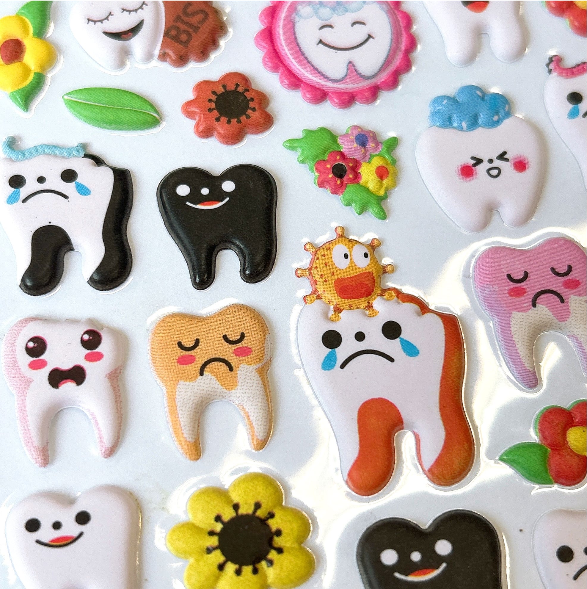 【 ぷくぷく ぷっくり ハッピー ティース ちゃん 3D シール 】No.59 お花 虫歯 カラフル インプラント 歯 歯医者 デンタル 歯磨き 歯ブラシ 歯科 小児歯科 歯科医院 ドクター 衛生士 子ども キッズ ご褒美 顔 ポップ かわいい 生活 自然 可愛い 女 男 手紙 便箋 スタンプ 立体 もちもち ステッカー おしゃれ 結婚式 招待状 ラッピング プレゼント カード シール帳 シール交換