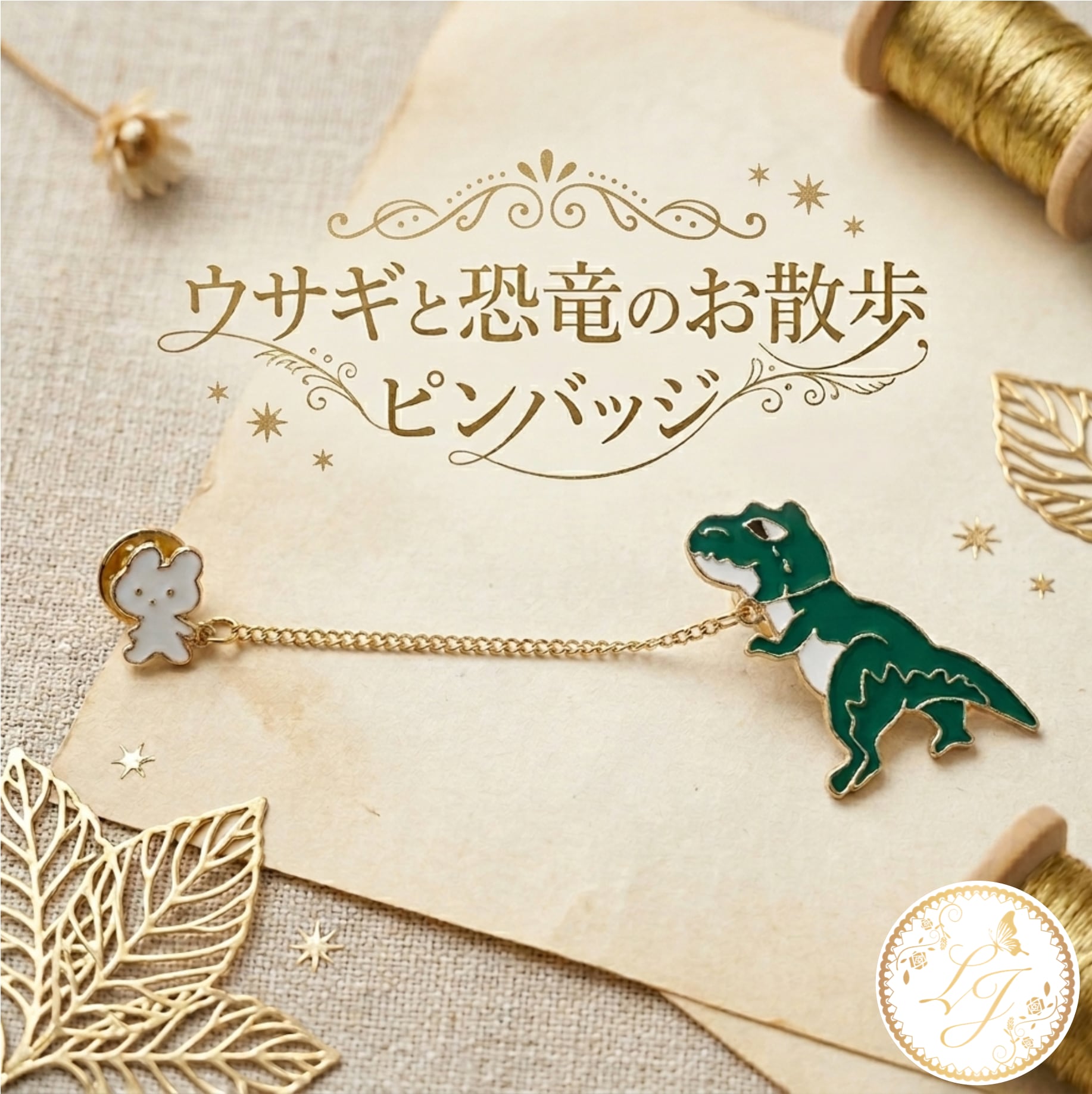 ■内容:うさぎと恐竜のお散歩 ピンバッジ 1個(チェーン付き)