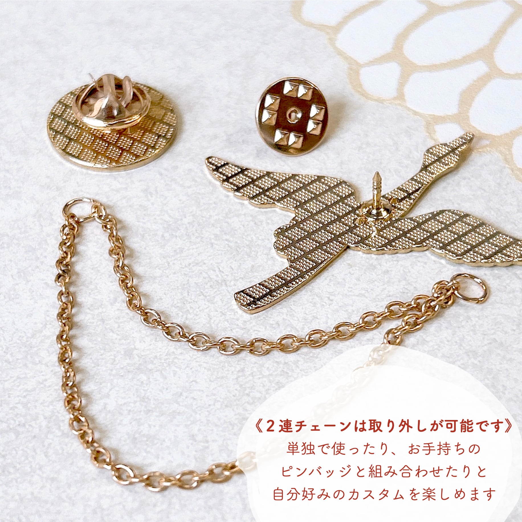 お手持ちのピンバッジと組み合わせて自分好みにカスタムを楽しめます。