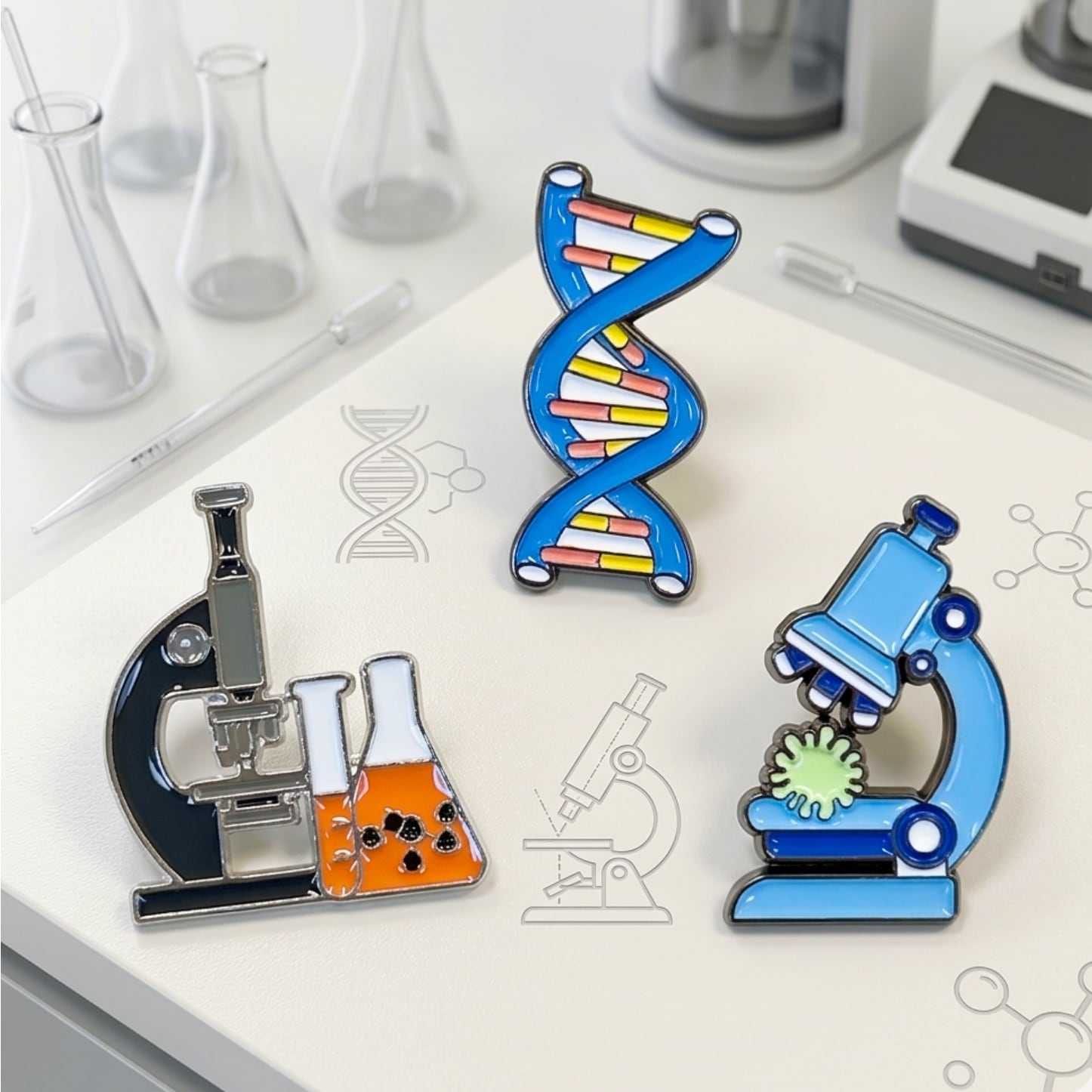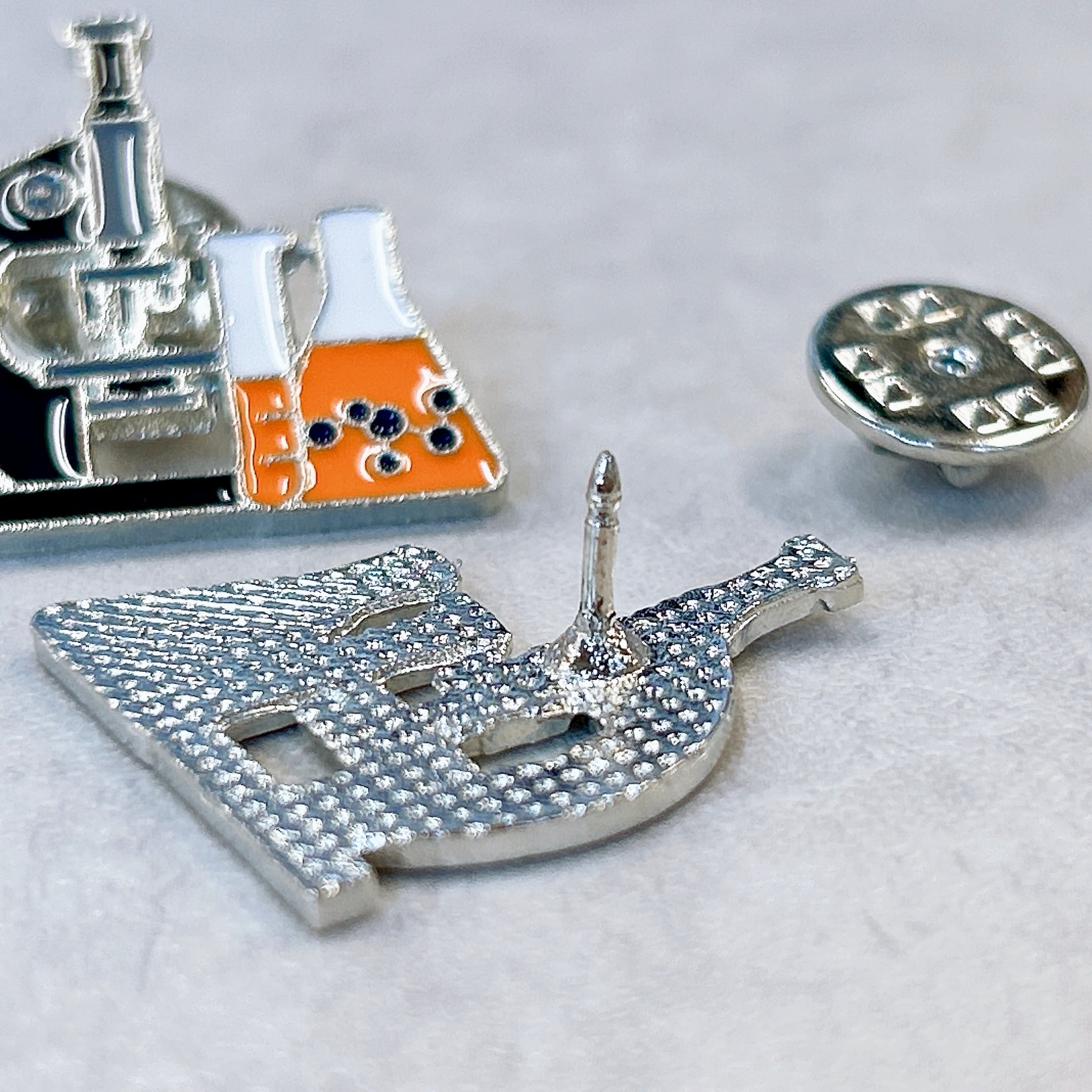 科学の魅力を身近に感じられる、顕微鏡デザインのピンバッジです。