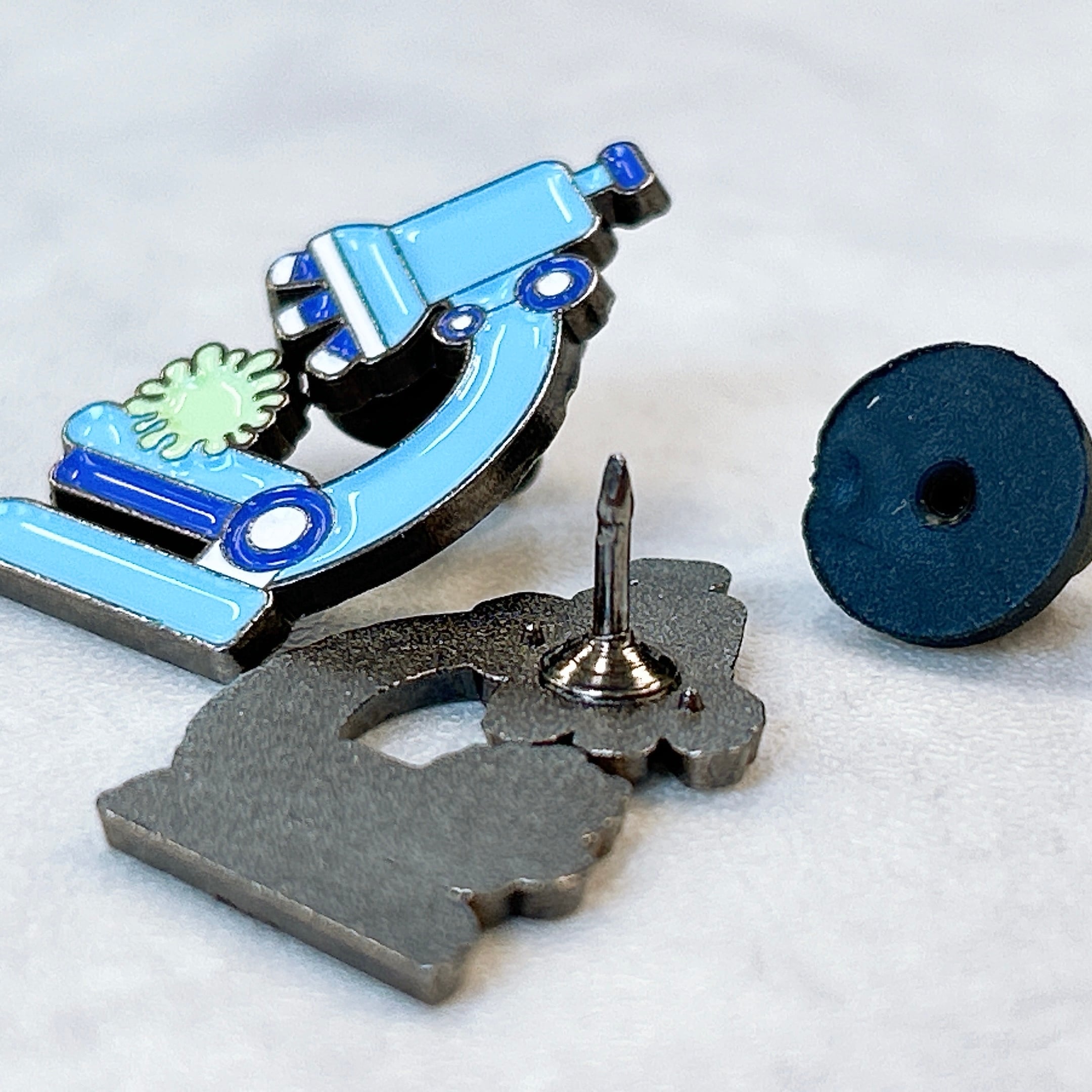 科学の魅力を身近に感じられる、顕微鏡デザインのピンバッジです。