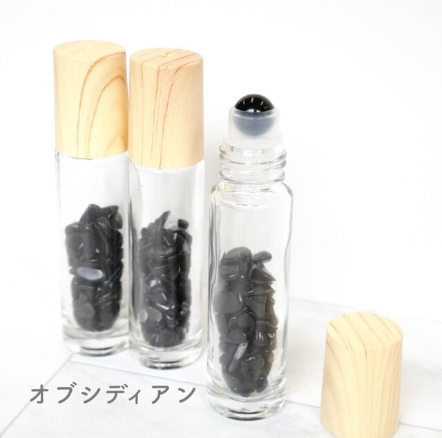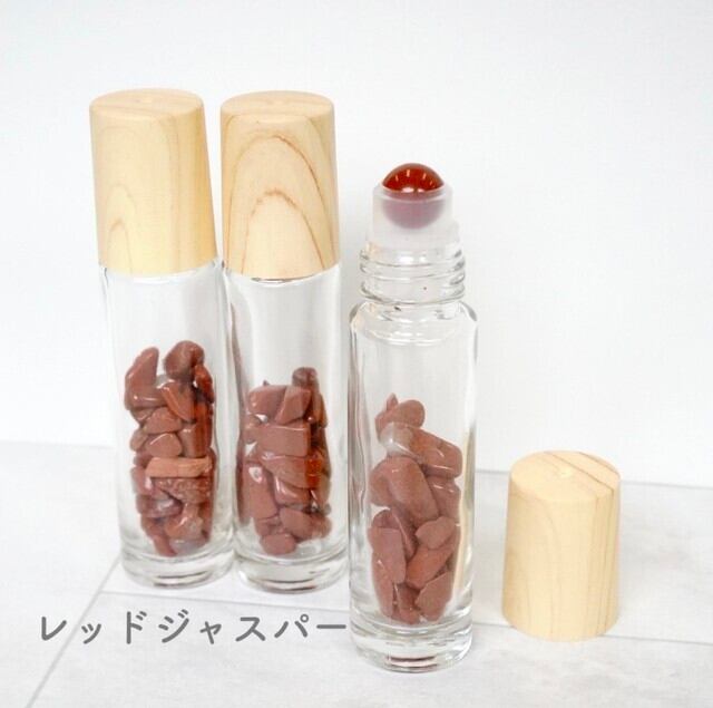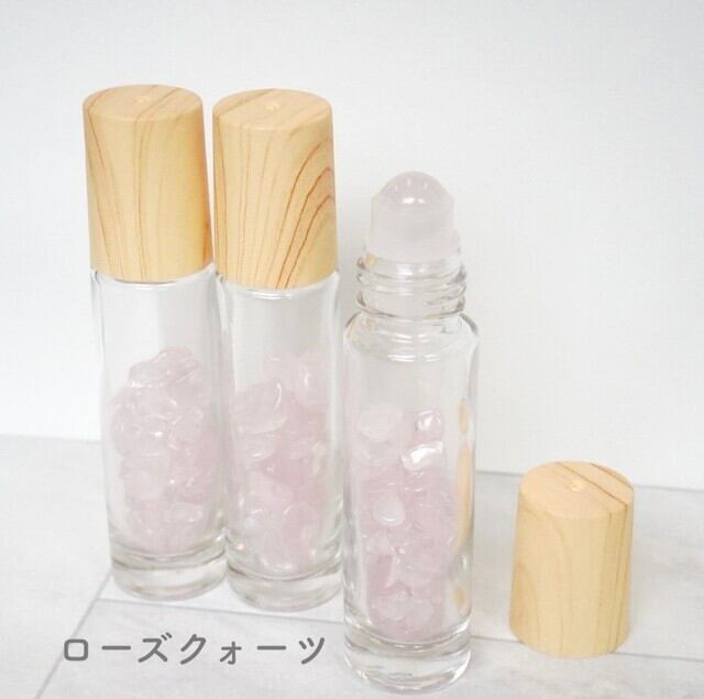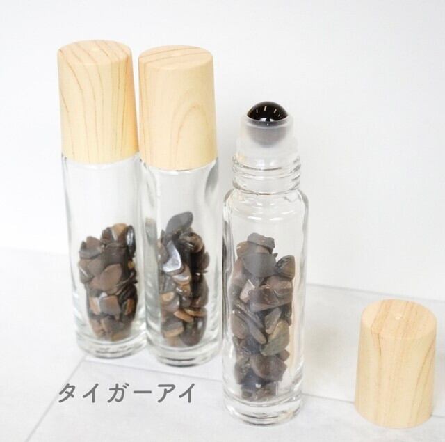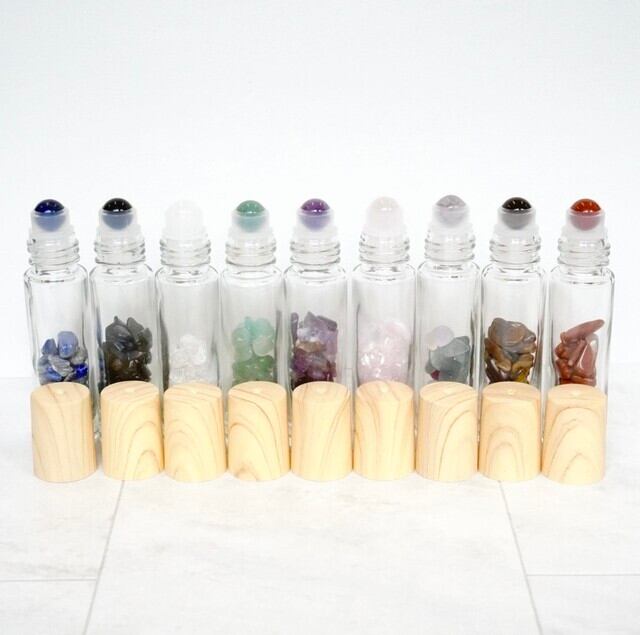 【天然石ロールオンボトル全9種】10ml 木目キャップ 宝石 パワーストーン さざれ石 香水 瓶 ガラス ジェムストーン 携帯 化粧 アロマ 精油 高級 おしゃれ