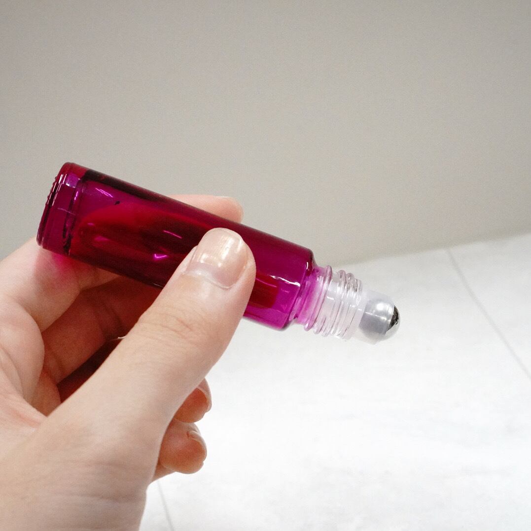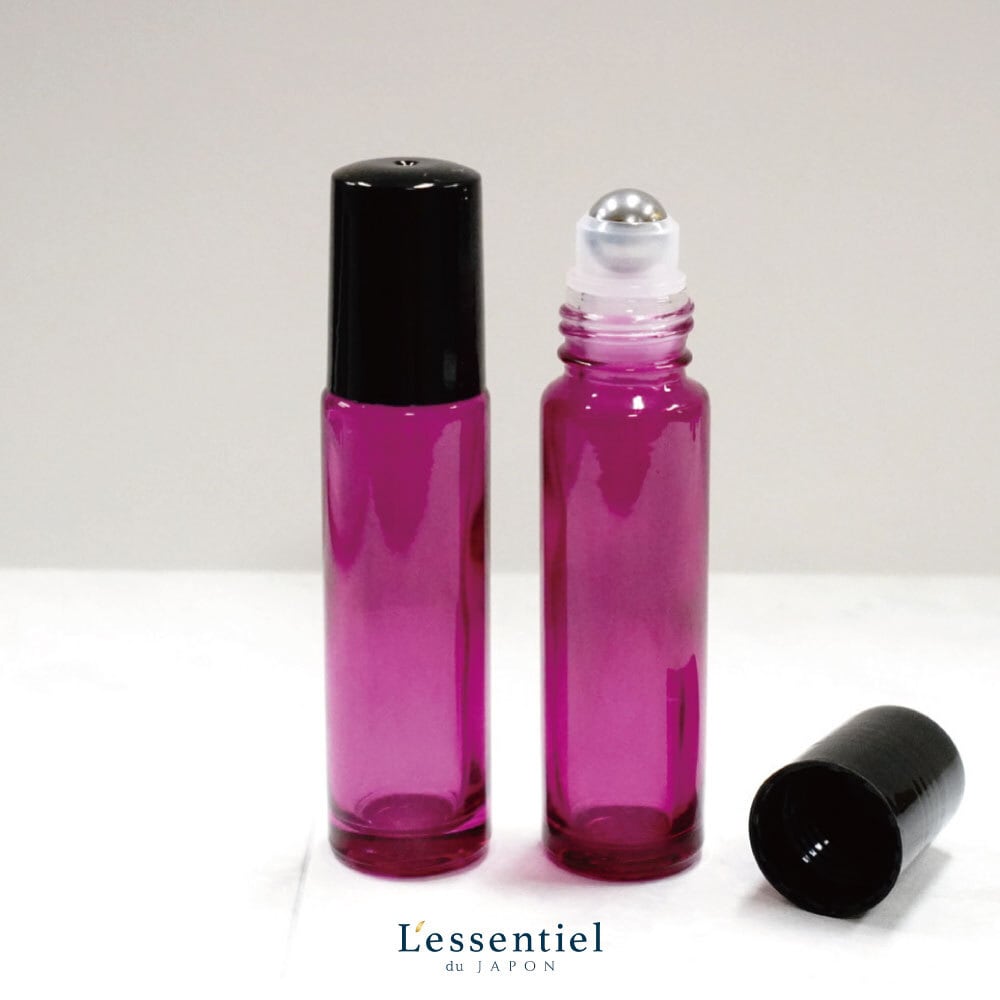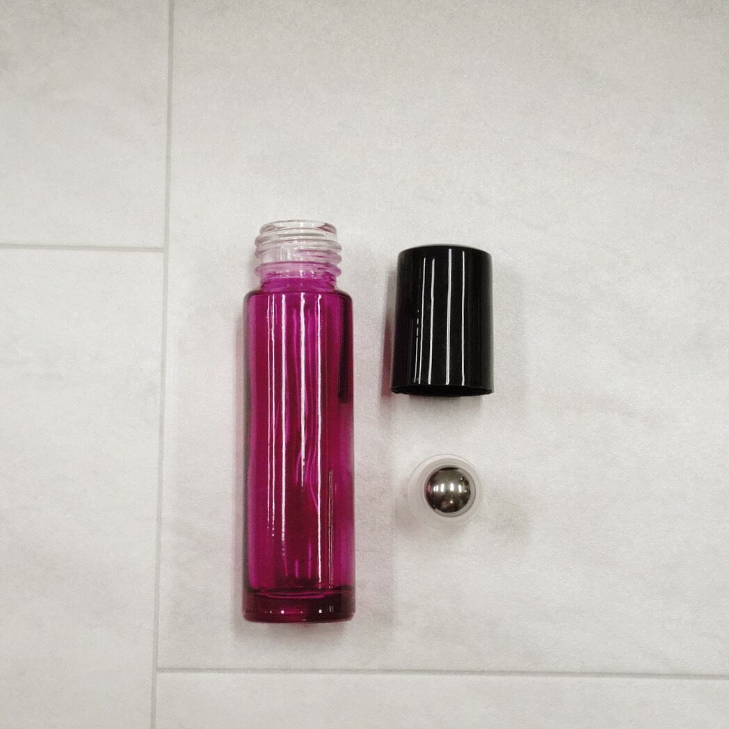 【ロールオンボトル】 10ml ピンク 蛍光 紫 黒キャップ 詰め替え容器 エッセンシャルオイル 香水 瓶 ガラス 携帯 化粧 アロマ 精油 高級 おしゃれ