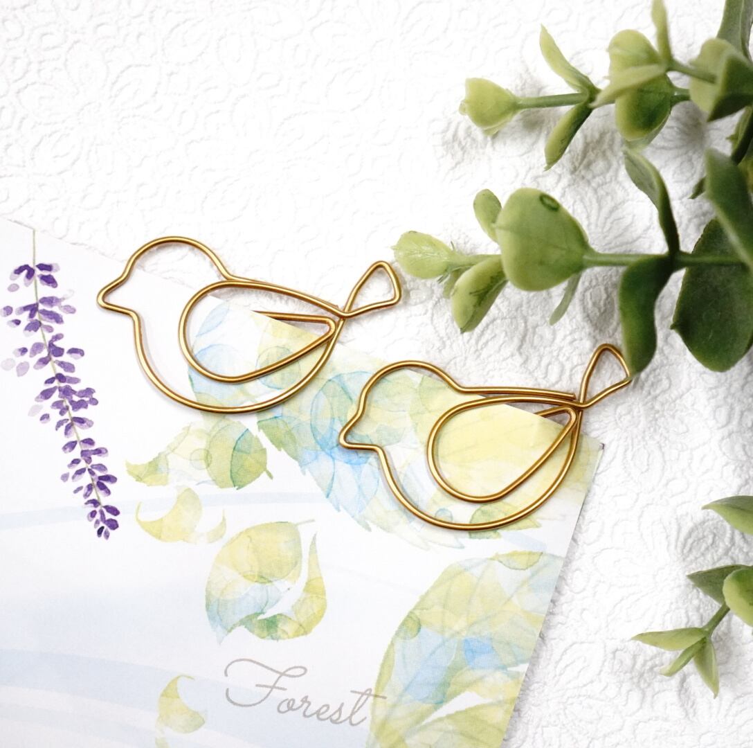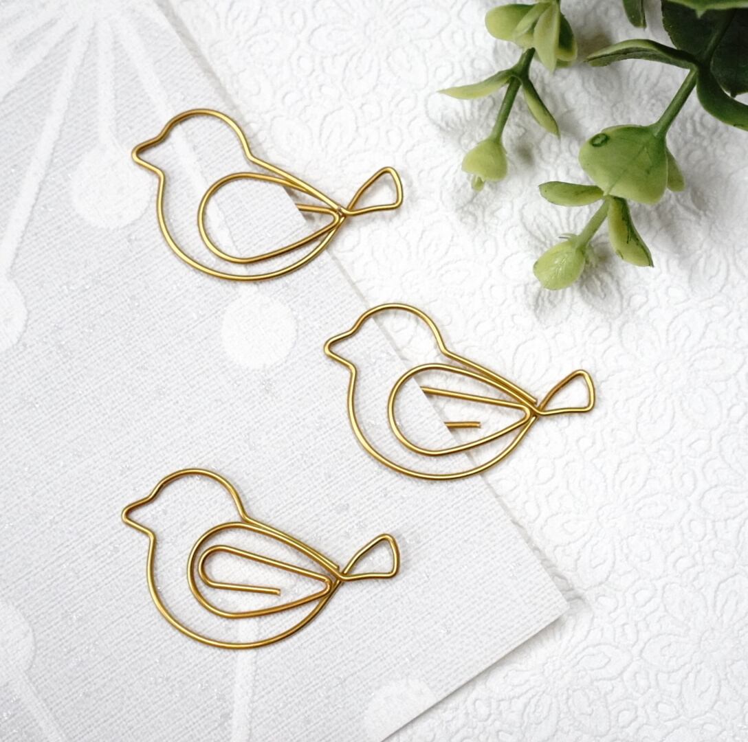 【ゴールド バード クリップ】15個 小鳥 ゼムクリップ ペーパークリップ ステーショナリー ブックマーク ラッピング 文房具 デスクアイテム かわいい