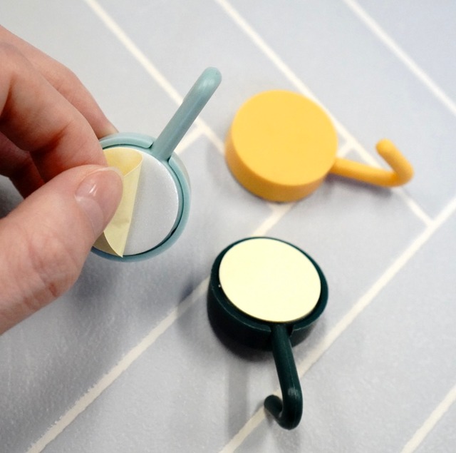 【カラフル サークルフック】1個 プラスチック 全5色 粘着シール 両面テープ 貼り付け跡なし 壁傷つけない 鍵かけ 玄関 収納 インテリア