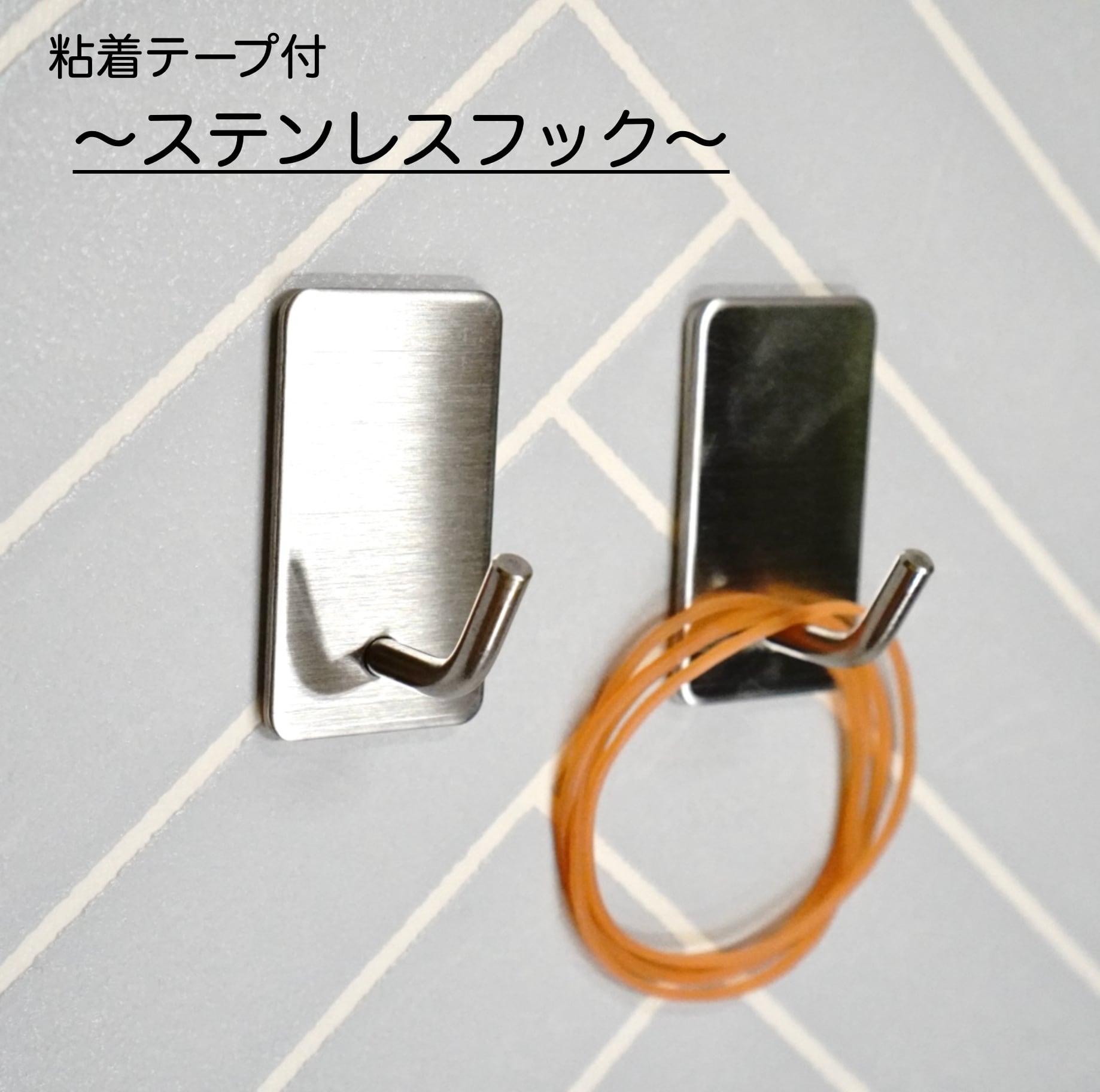 【ステンレス フック】1個 粘着シール 両面テープ 貼り付け跡なし 壁傷つけない 鍵かけ 玄関 収納 キッチン インテリア