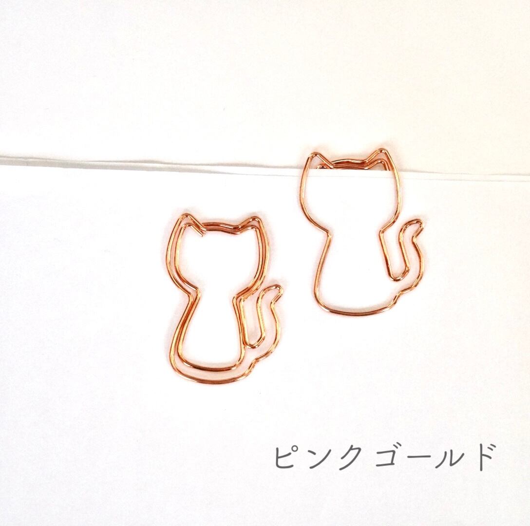 【 おすわり猫クリップ 】 10個 ゴールド ピンクゴールド ネコ ねこ 文房具 ゼムクリップ バインダー ノート オフィス ペーパー モチーフ 可愛い